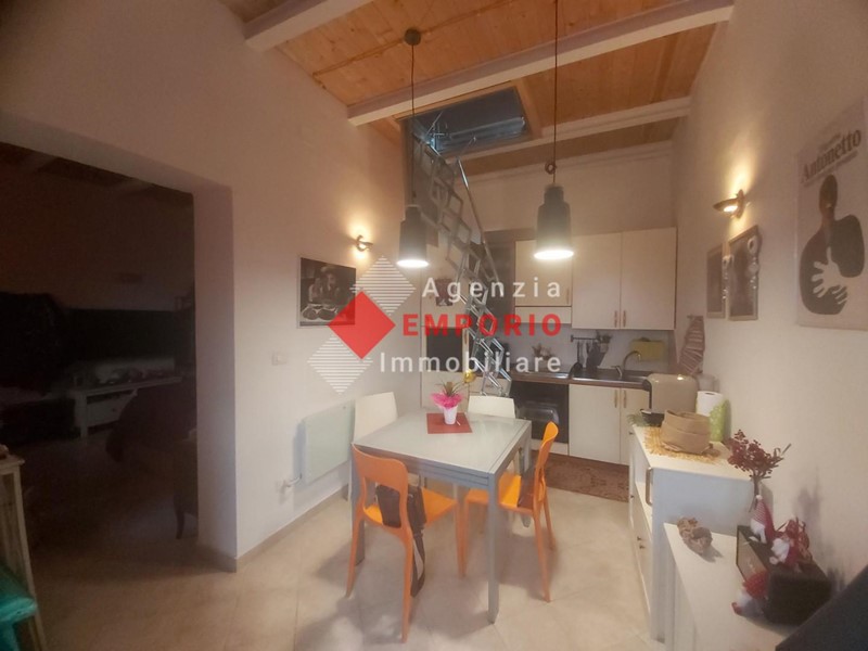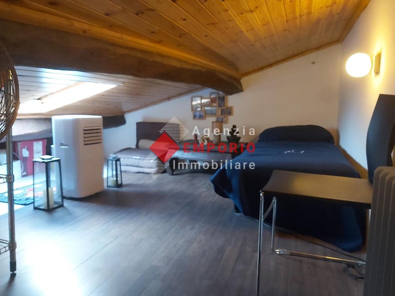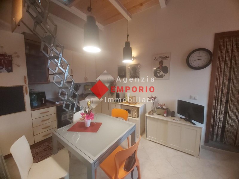 COMPOSIZIONE: a detto appartamento vi si accede da via pubblica attraverso vano scala a comune con altre unità, ed è composto da cucina-pranzo, antibagno-ripostiglio, bagno con piccola finestra, camera; attraverso scala retrattile si accede alla soffitta pavimentata e dotata di due lucernari. A comune con altre unità immobiliari, vi sono il cortile posto sul retro con accesso dall'atrio scala, e piccolo ripostiglio posto tra il piano primo e il piano secondo.
