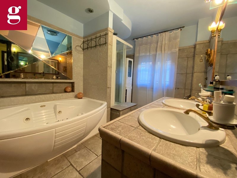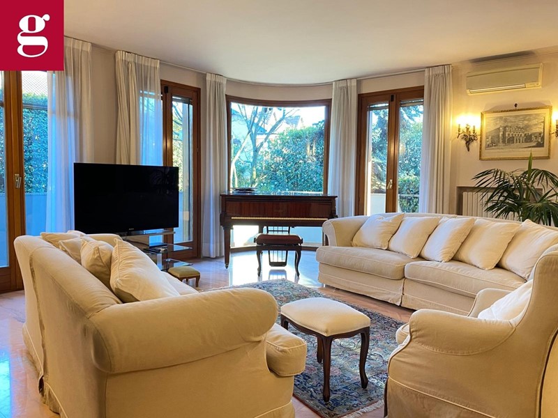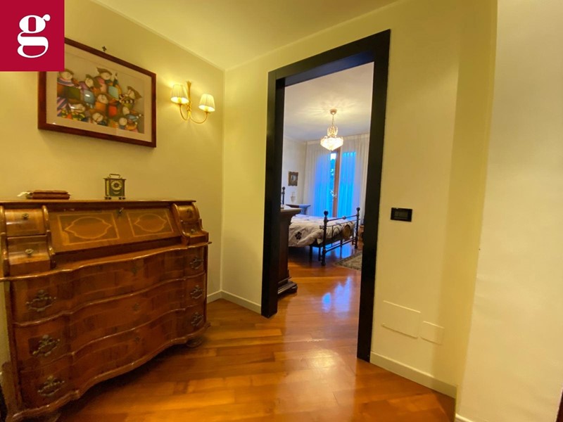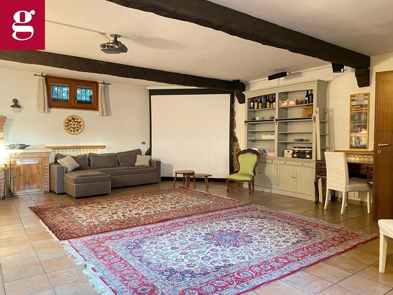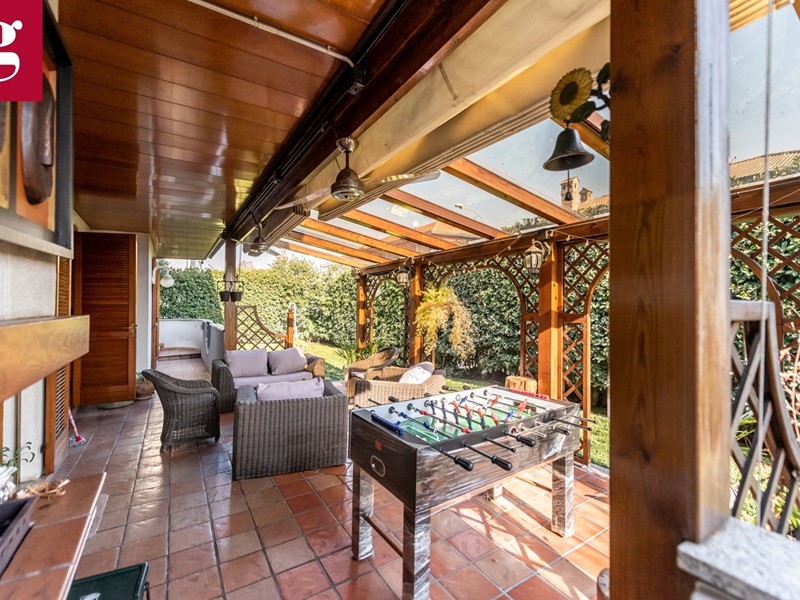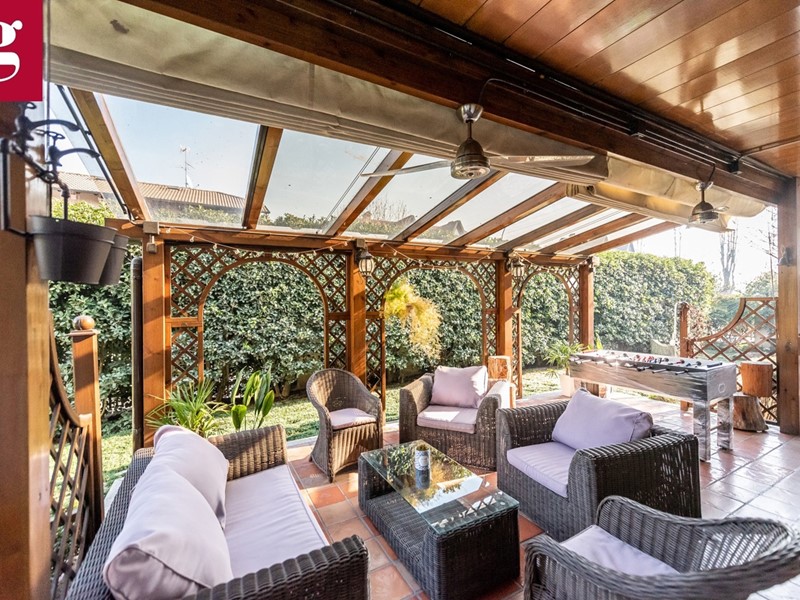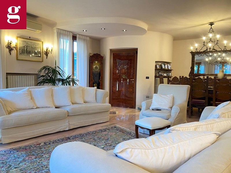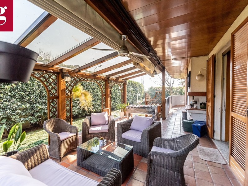 In una tranquilla strada privata con cancello, proponiamo esclusivo appartamento in villa ideale per chi cerca ampi spazi, eleganza e privacy. Distribuita su due livelli autonomi, entrambi dotati di ingressi indipendenti e caldaie separate, garantendo il massimo del comfort e della funzionalità. L'immobile è composto al piano terra di ingresso principale ampio salone luminoso grazie a vetrate di stile architettonico ricercato che versa su patio e giardino privato di circa 400 mq, cucina abitabile con accesso diretto al bersot, una zona living all'aperto attrezzata con divanetti, tavolo da pranzo e barbecue, ideale per i momenti di convivialità, stanza studio, due camere da letto di cui quella padronale con bagno en suite e un camino francese, completano il piano due bagni finestrati. Al piano inferiore, tramite una comoda scala, si accede a una taverna di 130 mq dove il salone in ingresso è completo di cucina in muratura e camino. Sono presenti tre locali e una grande lavanderia, oltre a un bagno con doccia. Completano la soluzione l'ampio spazio dedicato a box e magazzino con accesso sia pedonale che tramite una rampa con cancelli telecomandati, offre spazio per più auto e attrezzature. Il magazzino è dotato anche di una cella frigorifera funzionante di 20 mq, perfetta per chi ha necessità di un deposito alimentare o attrezzature. Il box è sufficientemente grande per ospitare anche un furgone. Plus sono i sistemi di sicurezza con videosorveglianza, allarme a sensori sulle finestre oltre che ad impianto di aria condizionata.