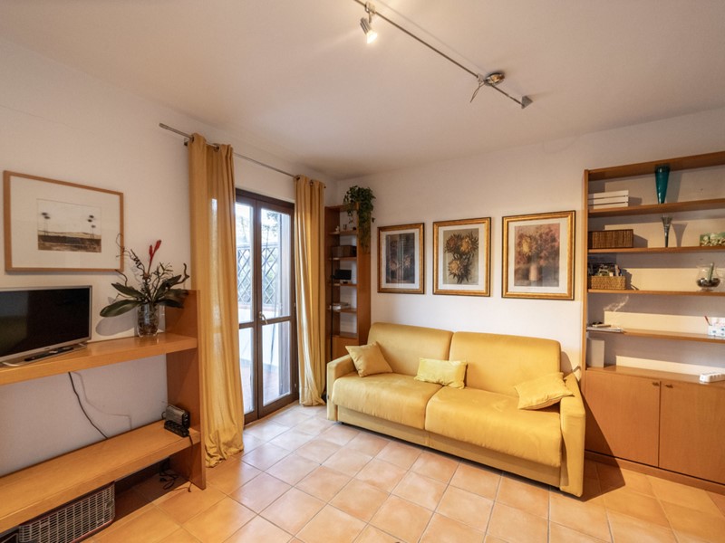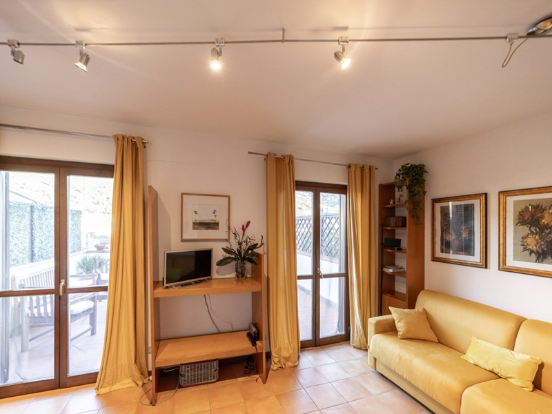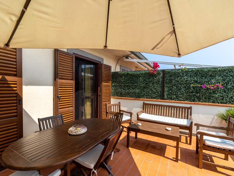 Dal soggiorno si accede a una splendida terrazza attrezzata, ideale per cene all’aperto, momenti di relax o colazioni estive, arredata con divani e tavolo da pranzo: uno spazio conviviale e riservato da vivere in ogni stagione.