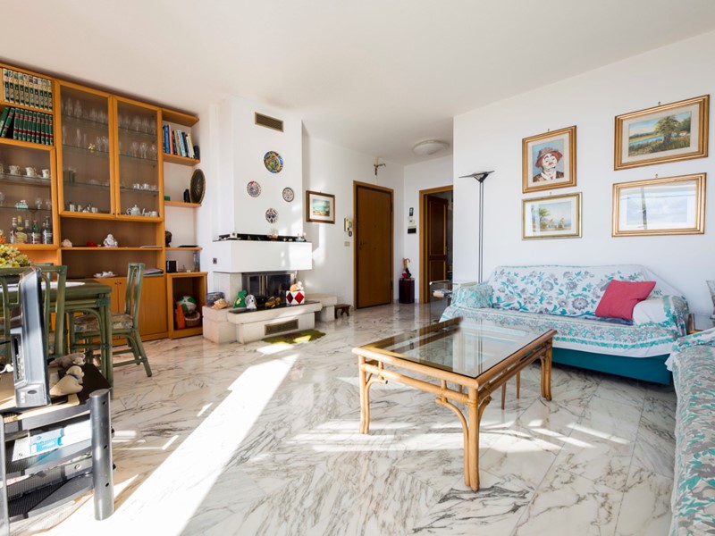 L'appartamento con vista aerea si compone di un ampio ingresso sulla luminosissima zona giorno con camino funzionante e dotata di doppia ed ampia finestratura di cui una con accesso al terrazzo dove è possibile concedersi momenti di relax al sole o godersi incantevoli tramonti.