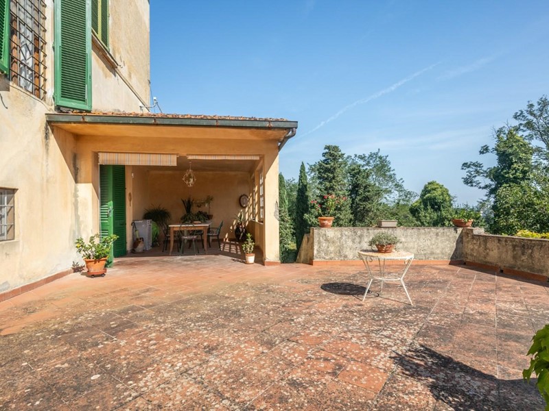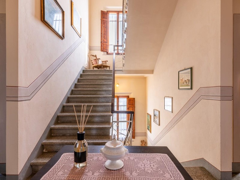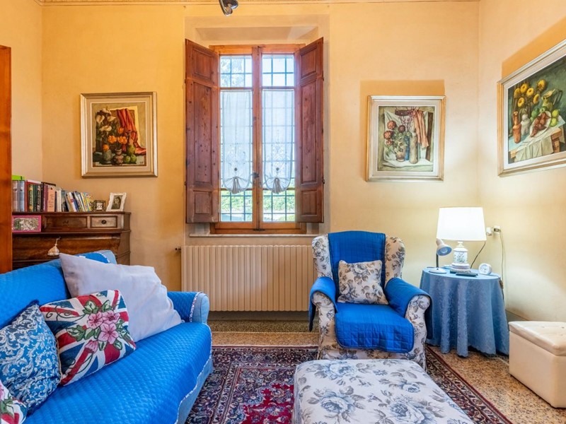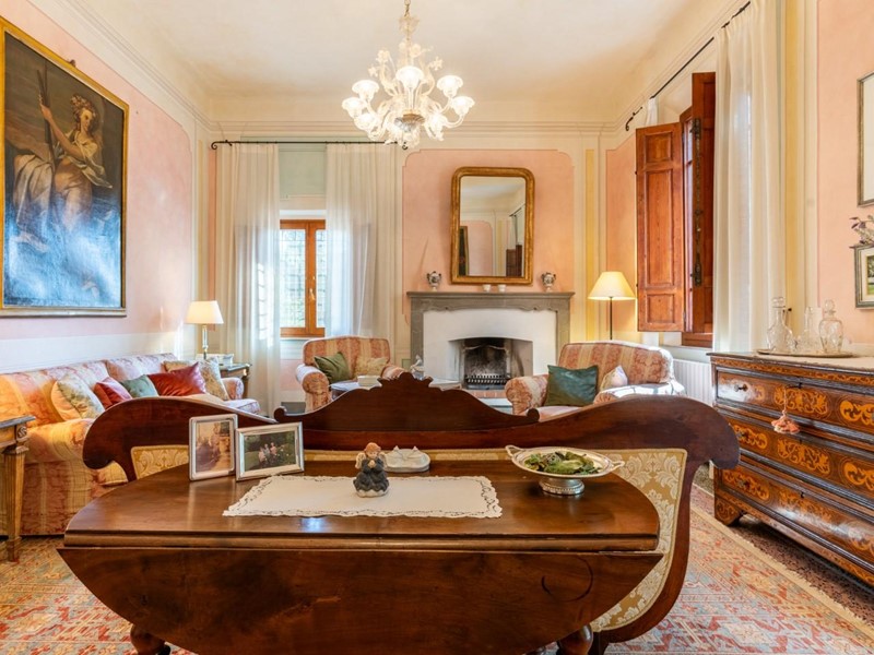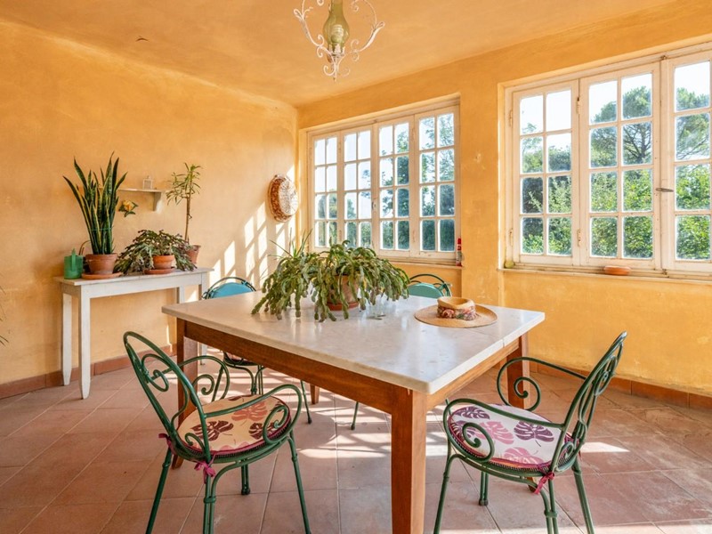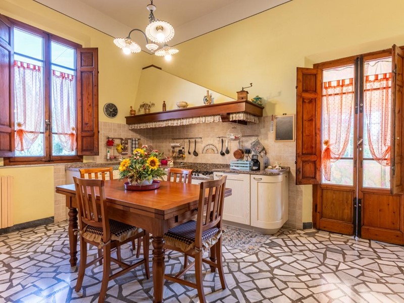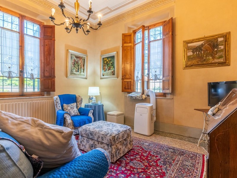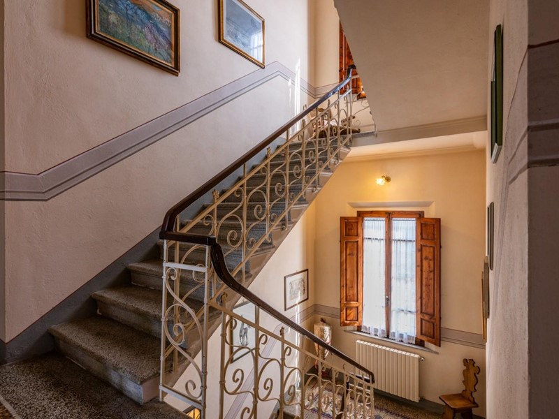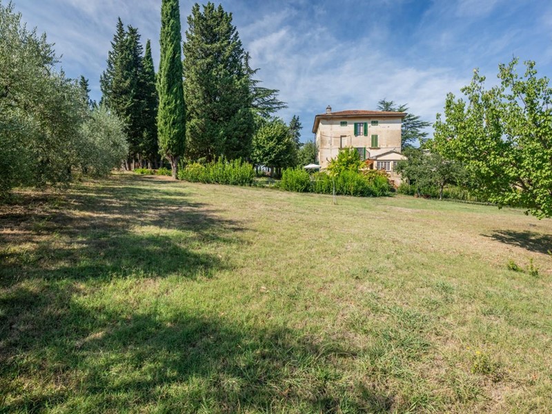 La villa principale, di circa 640 mq, è disposta su 3 livelli, oltre al piano interrato destinato a cantine. La zona giorno al piano terra, di circa 145 mq, è suddivisa in un ampio ingresso/disimpegno, salotto collegato ad un ampio soggiorno con camino, altro salotto, piccolo disimpegno, bagno e cucina abitabile con accesso ad una veranda ed a una terrazza di circa 45 mq con una splendida vista sulle colline; al piano primo, con accesso dalla scala interna, troviamo 4 camere matrimoniali, uno studio con accesso al balcone, una stanza armadi ed un bagno; al piano secondo, proseguendo dal vano scala interno, troviamo la soffitta praticabile suddivisa in vari locali con finestra, con altezze ben sfruttabili (minimo h 2,32 - massimo h. 4,20). Al piano interrato, con accesso dal giardino, troviamo le cantine di circa 210 mq.