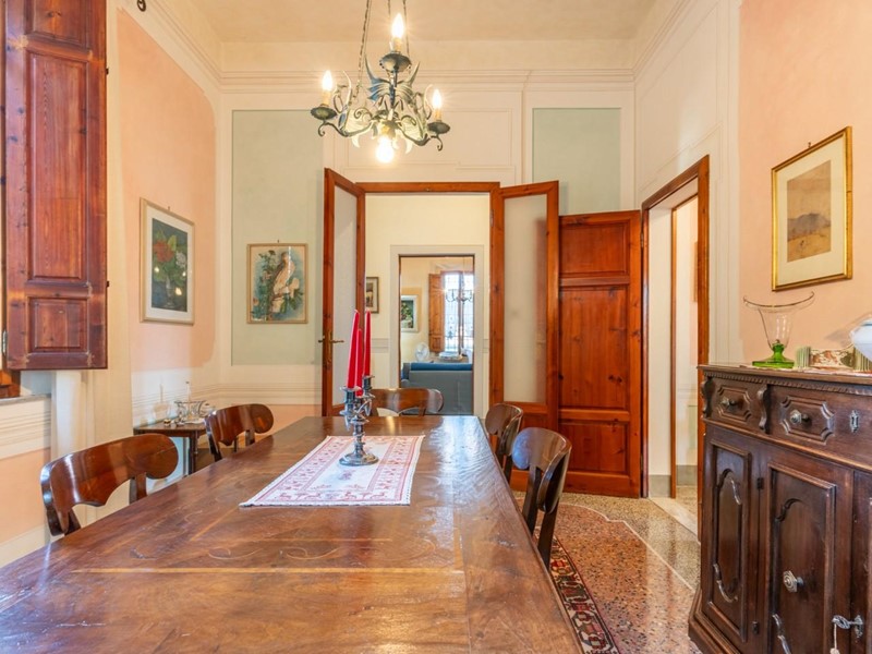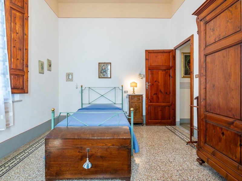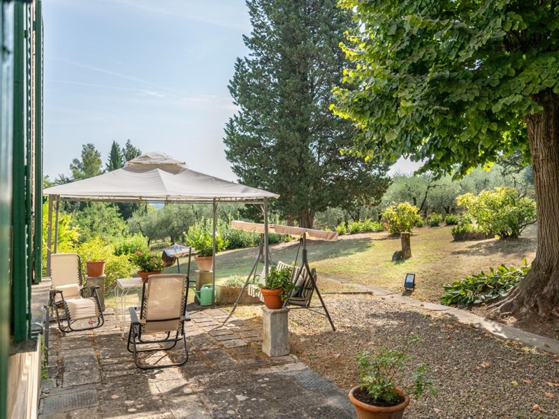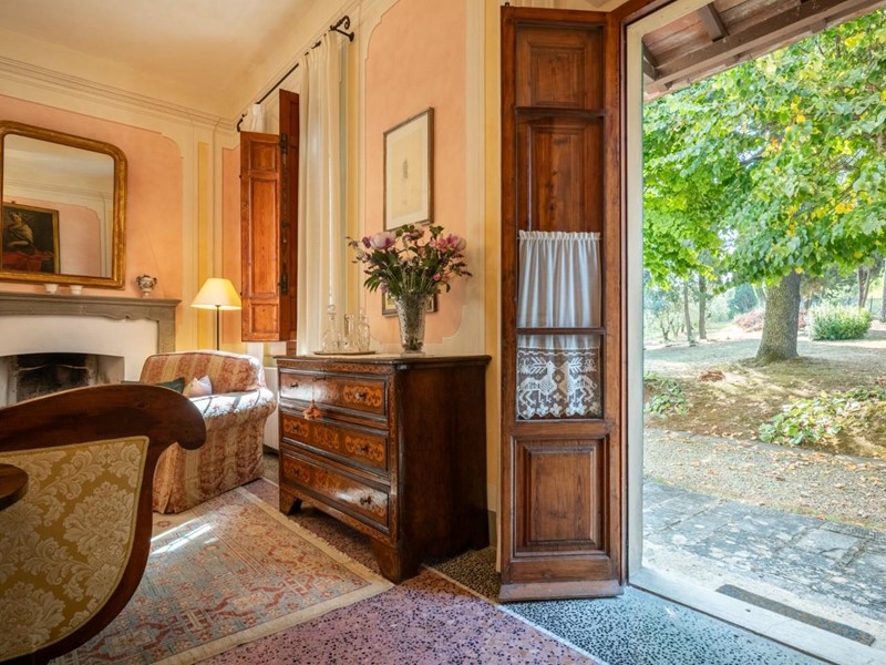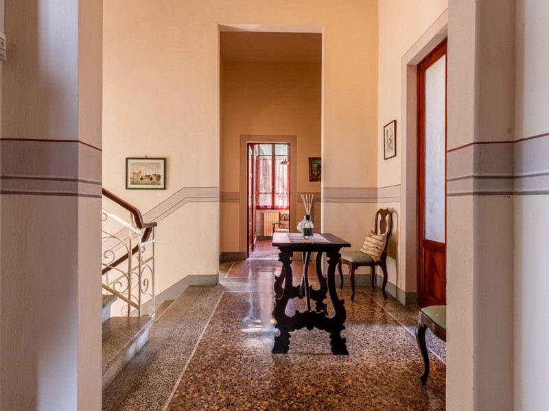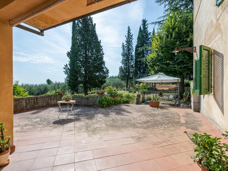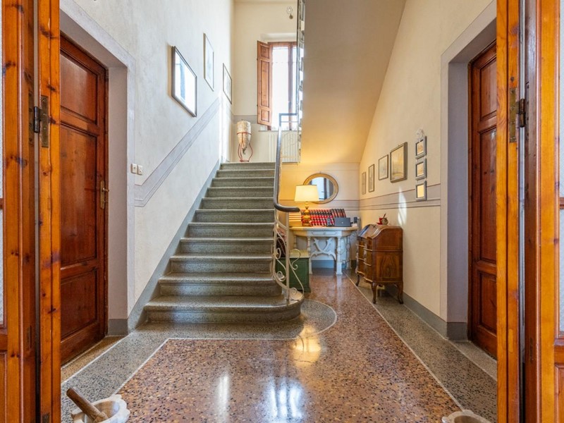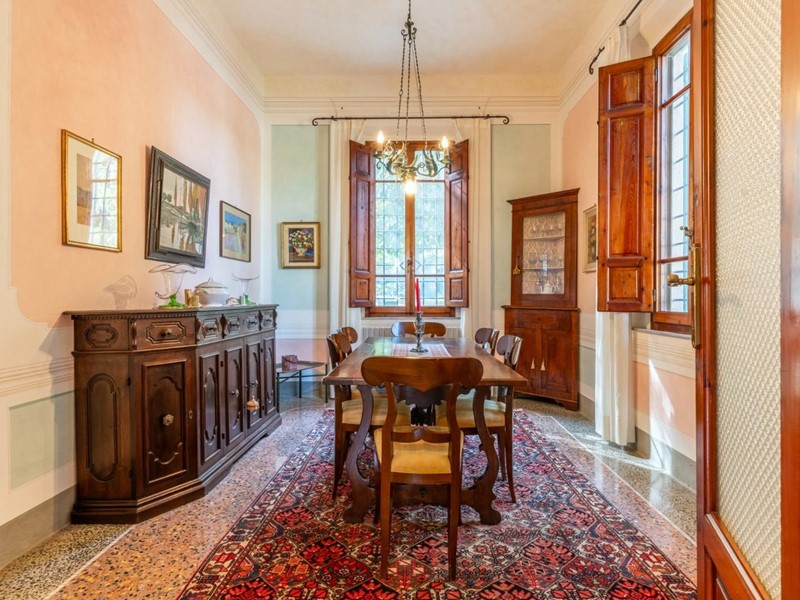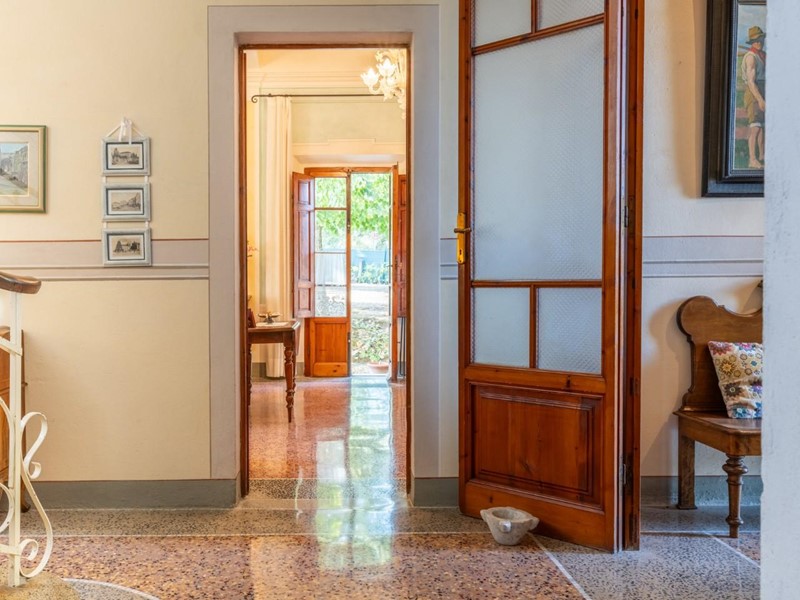 La villa principale, di circa 640 mq, è disposta su 3 livelli, oltre al piano interrato destinato a cantine. La zona giorno al piano terra, di circa 145 mq, è suddivisa in un ampio ingresso/disimpegno, salotto collegato ad un ampio soggiorno con camino, altro salotto, piccolo disimpegno, bagno e cucina abitabile con accesso ad una veranda ed a una terrazza di circa 45 mq con una splendida vista sulle colline; al piano primo, con accesso dalla scala interna, troviamo 4 camere matrimoniali, uno studio con accesso al balcone, una stanza armadi ed un bagno; al piano secondo, proseguendo dal vano scala interno, troviamo la soffitta praticabile suddivisa in vari locali con finestra, con altezze ben sfruttabili (minimo h 2,32 - massimo h. 4,20). Al piano interrato, con accesso dal giardino, troviamo le cantine di circa 210 mq.