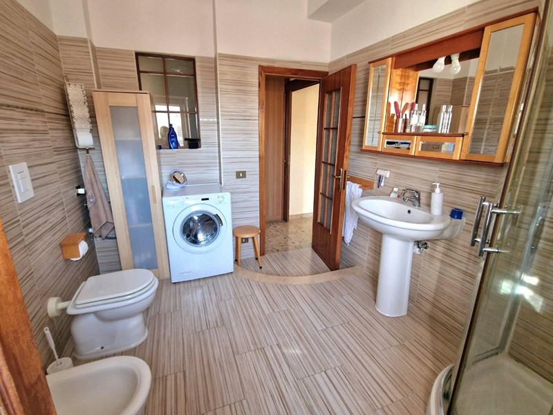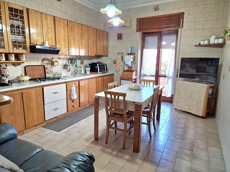 Nelle immediate vicinanze del nuovo centro Maximall, dalla stazione ferroviaria, poste, scuole e tutte le attività commerciali utili per la praticità della vita quotidiana, proponiamo in vendita in contesto riservato e tranquillo, appartamento arioso e luminoso di 120 mq circa posto ad un comodo 1° piano; L'immobile si compone di un accogliente ingresso che apre il corridoio, dislocando i vari ambienti ovvero: salone con annessa cucina abitabile collegate entrambi i vani da un'ampia balconata, camera matrimoniale, cameretta, bagno padronale con box doccia + ulteriore bagno di servizio ad uso lavanderia. L'appartamento si presenta in discreto stato di manutenzione, offrendo l'opportunità di personalizzarlo secondo i propri gusti ed esigenze. Di esclusiva proprietà spazio sottostante ad uso garage di 33 mq adibito per posti auto. L'immobile è oggetto di condono edilizio 47/85  rif  33033