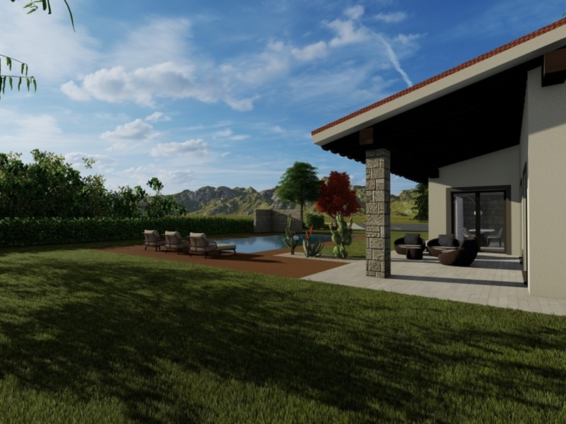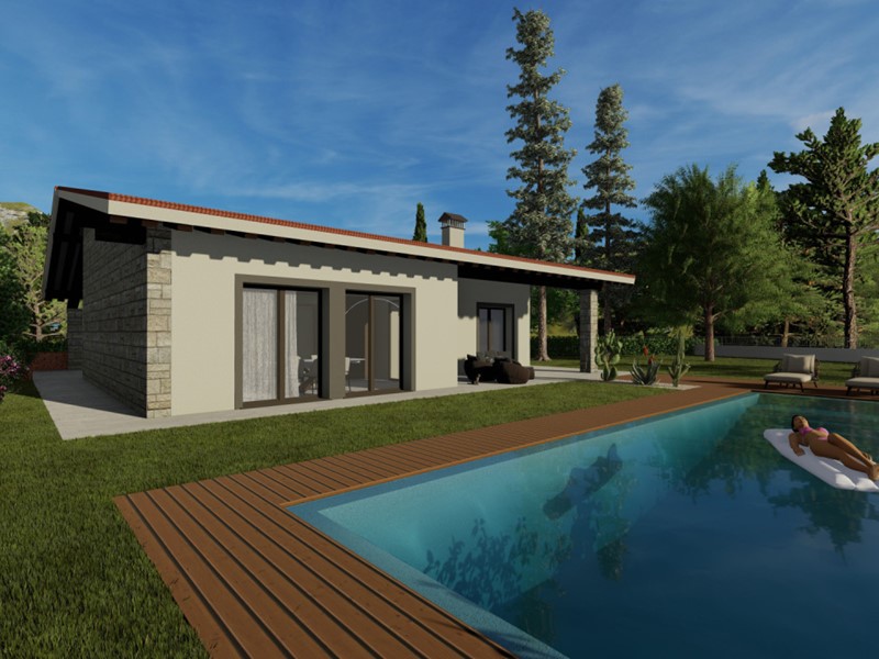 MOLINETTO DI MAZZANO, in contesto di prestigio con piscina, splendida villa in costruzione, completamente indipendente anche nel passo carraio. Classe energetica A3. Disposta su unico piano + semiterrato, splendido porticato di circa 60 mq e 820 mq di gardino privato. Finiture lussusuose, personalizzabili. Composta da ampio soggiorno con cucina a vista (ma separabile ed eventualmente abitabile), 3 camere da letto di cui 2 matrimoniali, doppi servizi (entrambi con finestra), grande taverna di 140 mq e garage doppio di 64 mq. Riscaldamento a pavimento. Aria condizionata. Possibilità di realizzare piscina privata. Consegna autunno 2025.