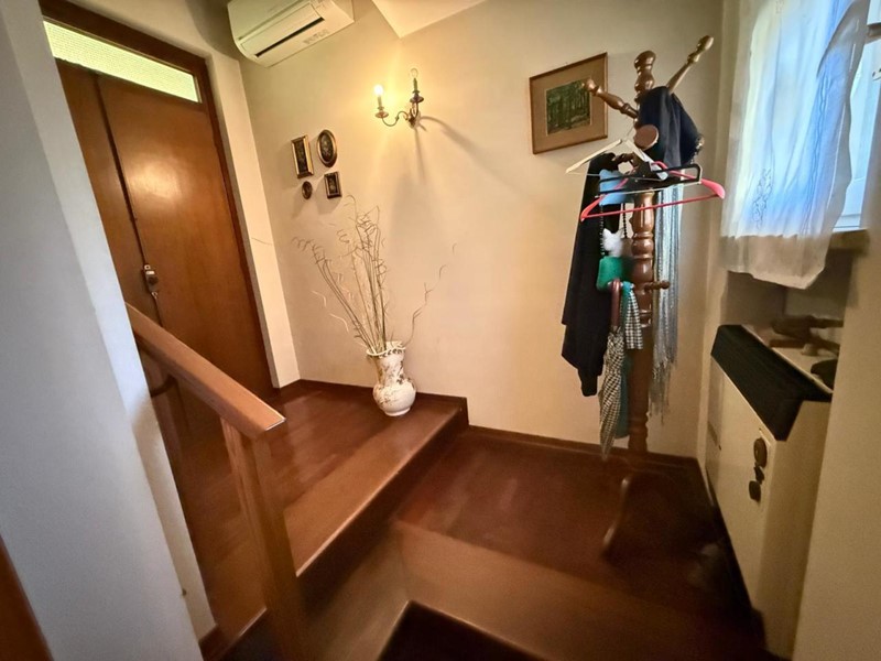 Al primo piano invece troviamo l'ingresso nel soggiorno, la cucina separata con terrazzo abitabile, un ripostiglio che porta alla zona notte composta da una prima camera matrimoniale con terrazzo, una seconda camera matrimoniale ed il bagno finestrato.