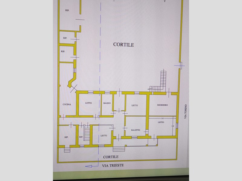 Posizione: Situata in via Oristano, con ingressi separati anche da via Trieste e via Torino, questa proprietà è perfetta per chi cerca una soluzione indipendente con ampi spazi esterni.