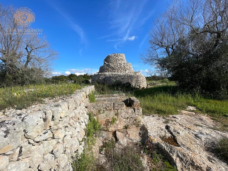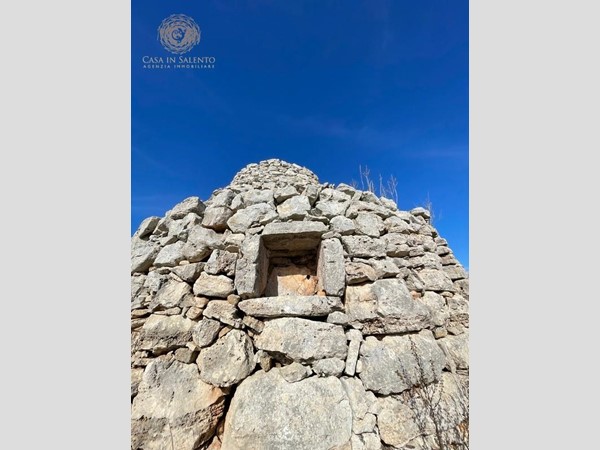 VENDESI terreno agricolo ad Alessano di circa 1,5 ettaro, zona "Fasciana". In zona tranquilla e prospicente alla strada cittadina, in località "Fasciana" sulla Serra dei Cianci, si propone in vendita un'antica pajara di notevoli dimensioni ed un'antica liama con camino in perfetto stato conservativo, risalenti ai primi del '900. Presente anche una cisterna e ideale come piccola residenza di campagna. Delimitato parzialmente da muretti a secco. La Serra dei Cianci è la maggiore altura della provincia di Lecce, facente parte delle cosiddette serre salentine, rilievi di modesta altitudine e caratterizzata da terrazzamenti coltivati ad ulivi secolari, con tronchi contorti e rugosi, dominata da muretti a secco, da "pajare", e dalla vegetazione sempreverde della macchia mediterranea. C.E.: "esente".