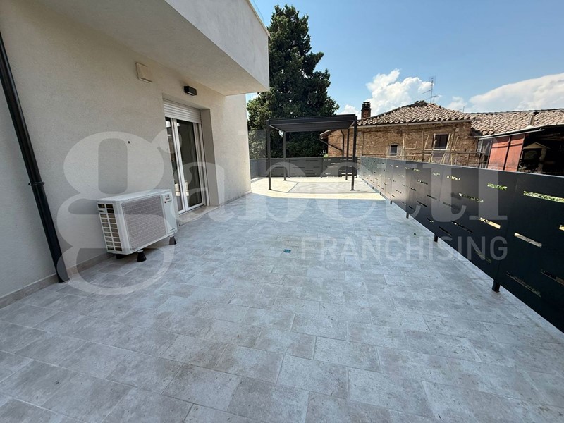 Perugia: In zona servita disponiamo di appartamento posto al piano primo di palazzina signorile di nuova costruzione. La soluzione si compone di soggiorno, cucina a vista, tre camere da letto di cui una con il bagno all'interno con finestra, disimpegno, secondo bagno, lastrico solare di 132 mq e terrazzo coperto di 14,9 mq. A completamento della proprietà un posto auto e cantina. Le principali caratteristiche costruttive sono le seguenti: - classe A; - struttura antisismica; - impianto fotovoltaico; - pompa di calore; - riscaldamento a pavimento; - finiture interne di alto livello. L' immobile viene venduto completamente arredato.