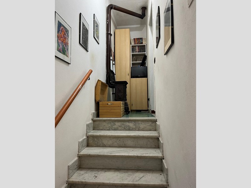 L’abitazione è accessibile tramite una scalinata di 30 gradini che conduce direttamente all’ingresso.