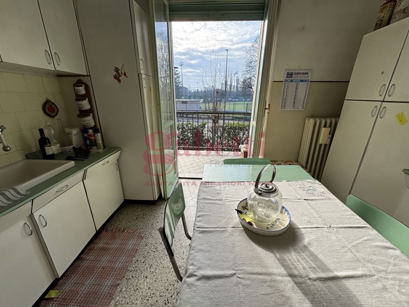 COMPOSIZIONE INTERNA: tripla esposizione nord/sud/est, ingresso, cucina abitabile, tre camere, ripostiglio, servizio, due balconi, cantina al piano seminterrato, posto auto non assegnato al piano cortile;