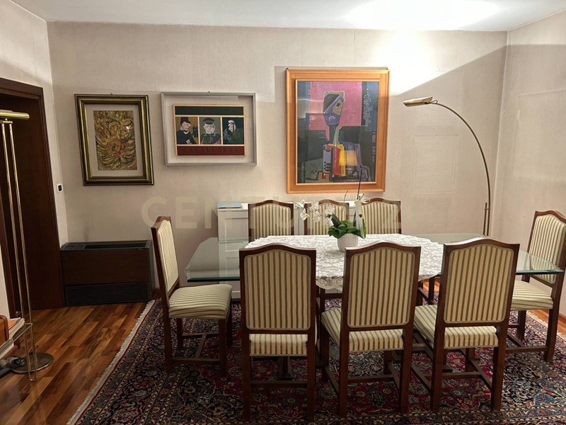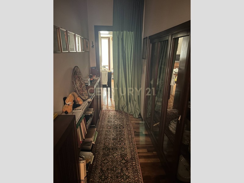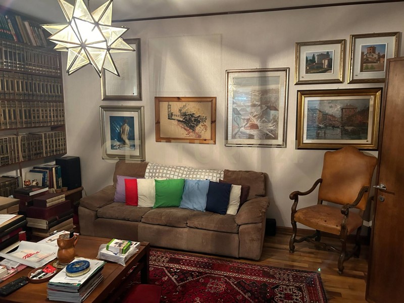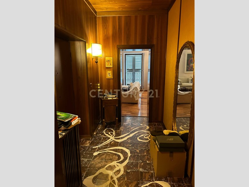 L'appartamento, inserito in un signorile palazzo storico ricostruito dopo la seconda guerra mondiale, di sole cinque unità, copre tutto il secondo piano e gode quindi dell'affaccio su entrambi i lati, sia su strada con grandi finestre che su corte interna dove troviamo un lungo balcone coperto. Per quanto riguarda le pertinenze la proprietà vanta due soffitte.