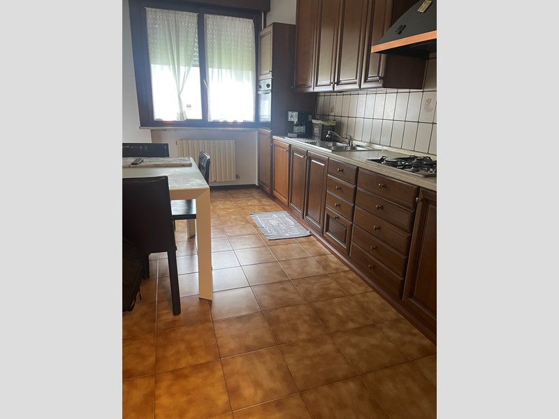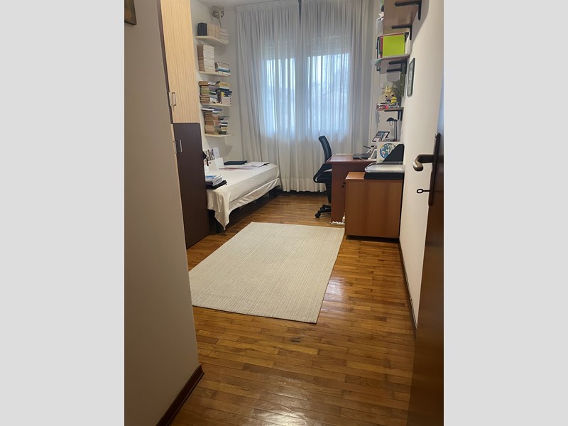 Superficie 120 m2 ben distribuita, cucina, soggiorno, tre camere, due bagni, terrazzo, ripostiglio, cantina, garage, posto auto, piano rialzato, condominio silenzioso di poche unità e basso costo di gestione, riscaldamento autonomo, spese condominiali 60-70 euro mensili.