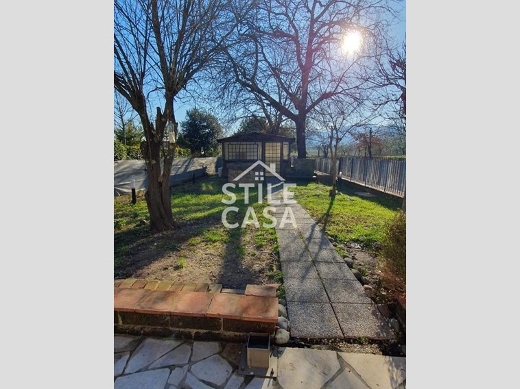La villetta è dotata di un box auto singolo, di giardino esclusivo di circa 250 mq su i tre lati oltre a resede piastrellata utilizzata come posto auto.