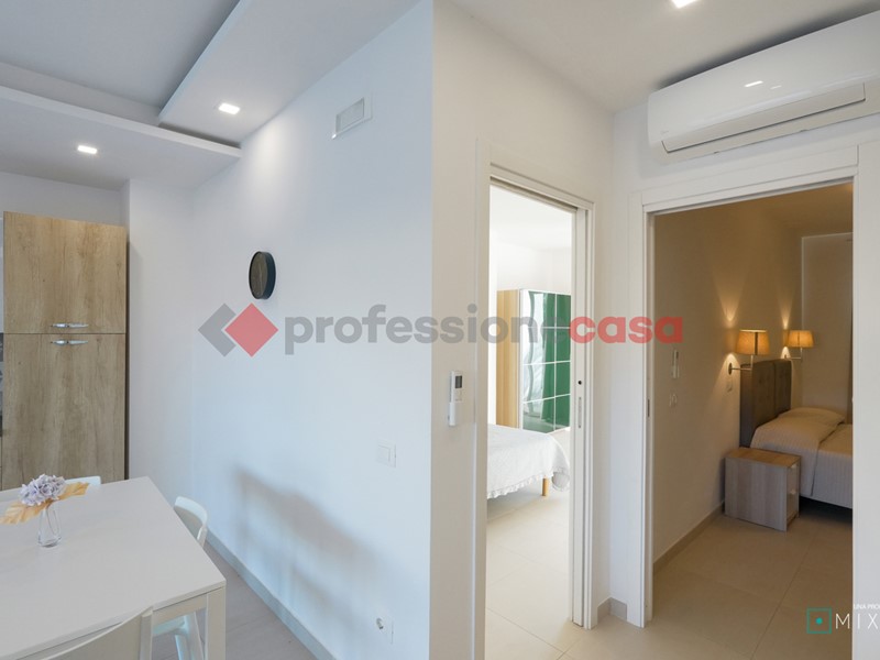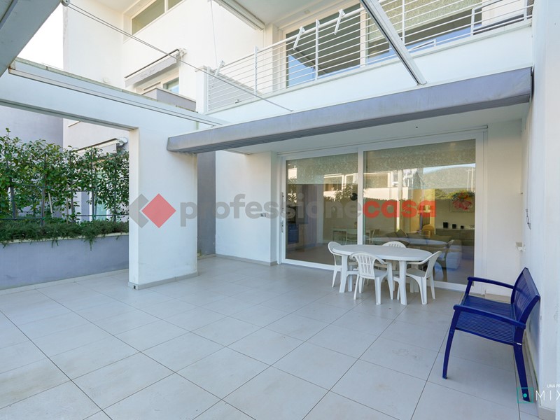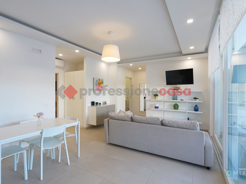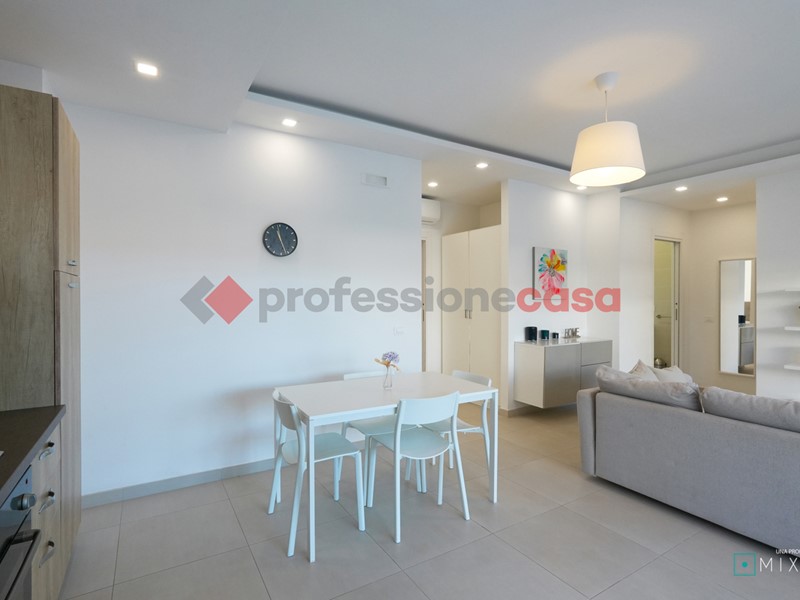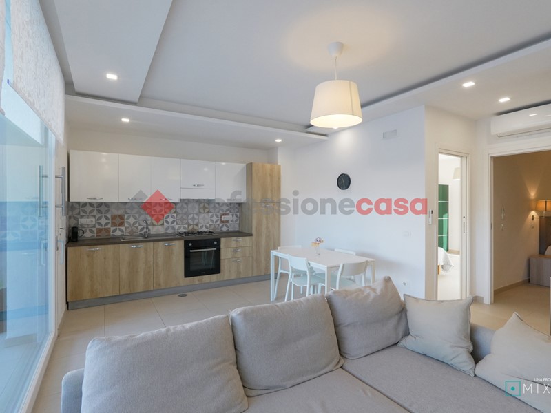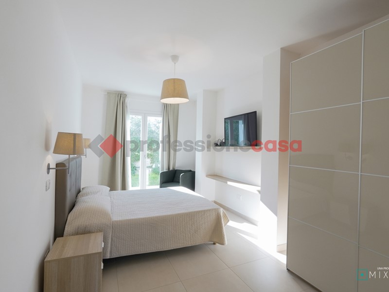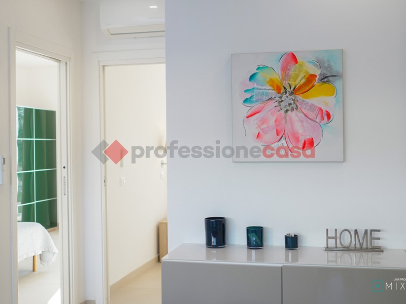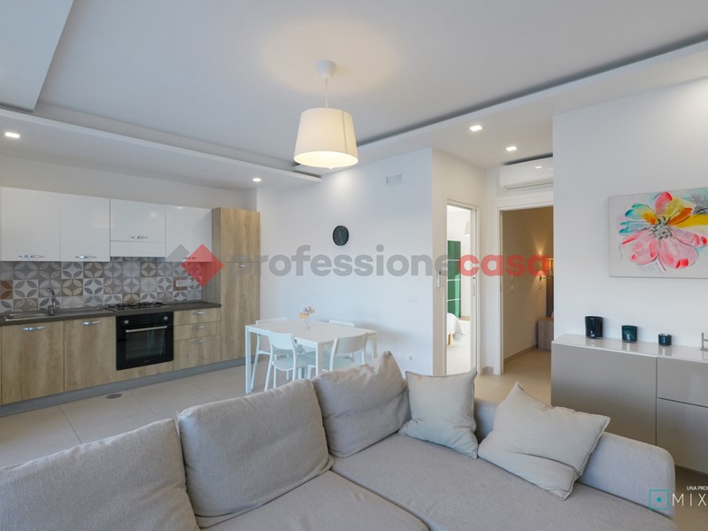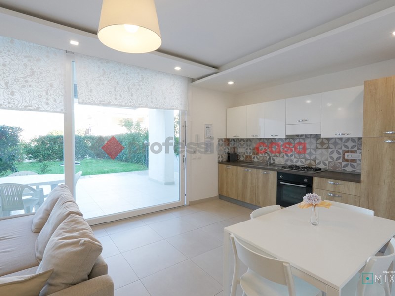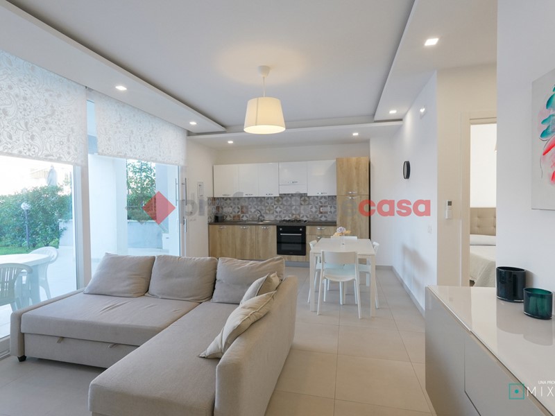 Gli ambienti si distribuiscono armoniosamente tra una luminosa zona giorno, due camere accoglienti e due bagni moderni, mentre la cucina abitabile si apre su un giardino privato, il luogo perfetto per colazioni all'aperto e momenti di relax avvolti dal profumo della brezza marina.