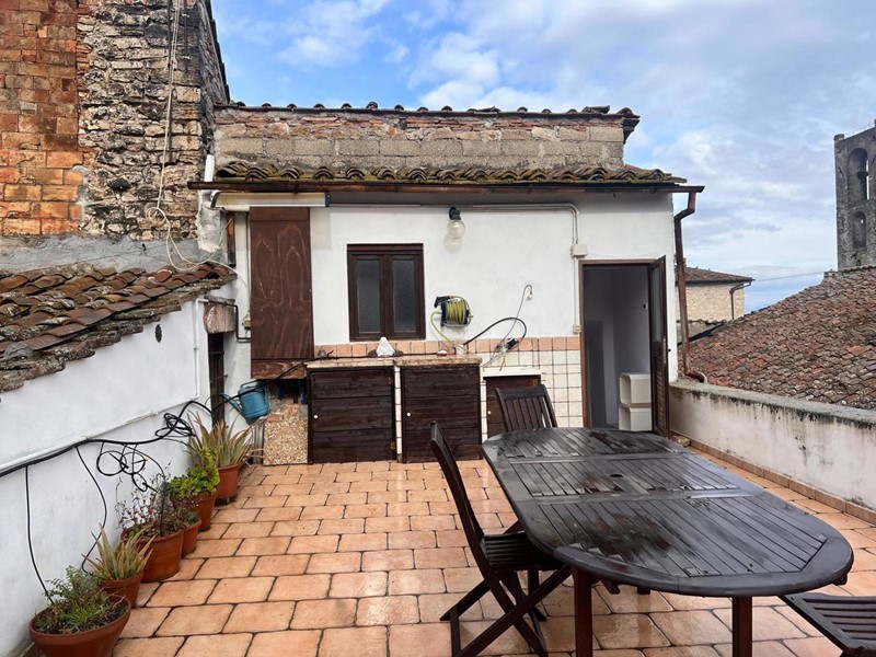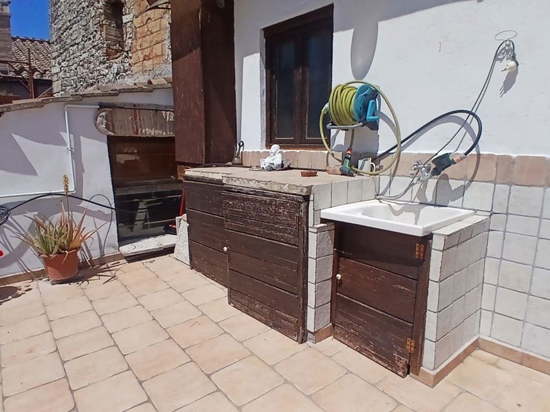 Il bagno, curato nei minimi dettagli, è dotato di tutti i comfort necessari per garantire il massimo benessere e relax. Inoltre, un grande terrazzo abitabile si estende davanti agli occhi degli ospiti, offrendo uno spazio all'aperto dove godere di momenti di tranquillità e ammirare la vista mozzafiato sui tetti del borgo antico e sulle colline circostanti.