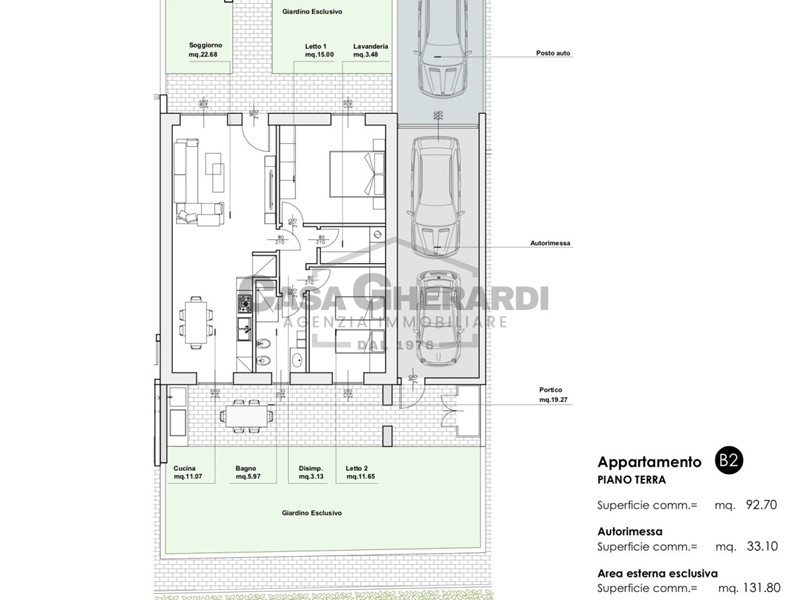 Soluzioni a piano terra con ingresso indipendente e giardino privato, oppure al piano primo con ampie terrazze vivibili entrambi con doppio box e posto auto.