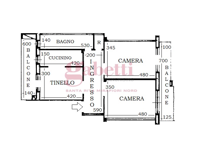 COMPOSIZIONE INTERNA: esposizione nord/ sud, ingresso, soggiorno, cucinino, due camere, servizio, ripostiglio, due balconi. Cantina di pertinenza al piano seminterrato;