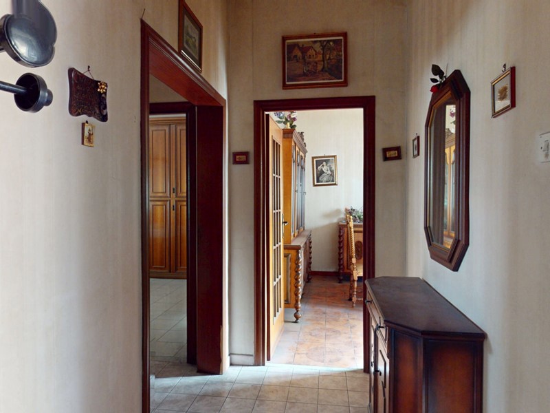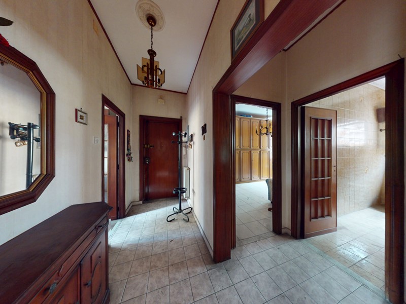 L'ingresso si apre su un ampio disimpegno, che conduce ai vari ambienti della casa distribuiti in soggiorno, 2 camere da letto, cucina e servizio.