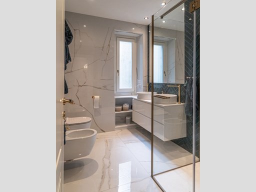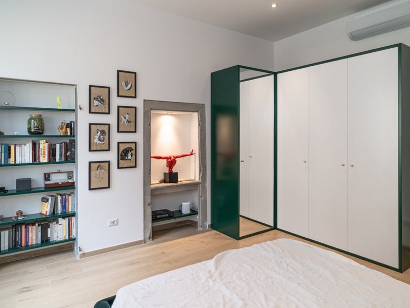 Le finiture di pregio esaltano l’unicità di questa residenza: infissi di ultima generazione garantiscono isolamento acustico e termico ottimale, mentre la cucina Scavolini, con piano a induzione extralarge e forno dual-cook, è un vero gioiello per gli amanti del design e della funzionalità. L’arredamento su misura, impreziosito da dettagli ricercati come il divano Febal, lo specchio Seletti e la lampada Giraffa in Love di Marcantonio, dona un carattere distintivo a ogni ambiente.