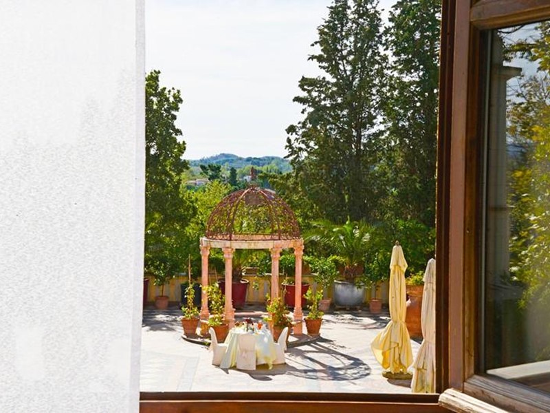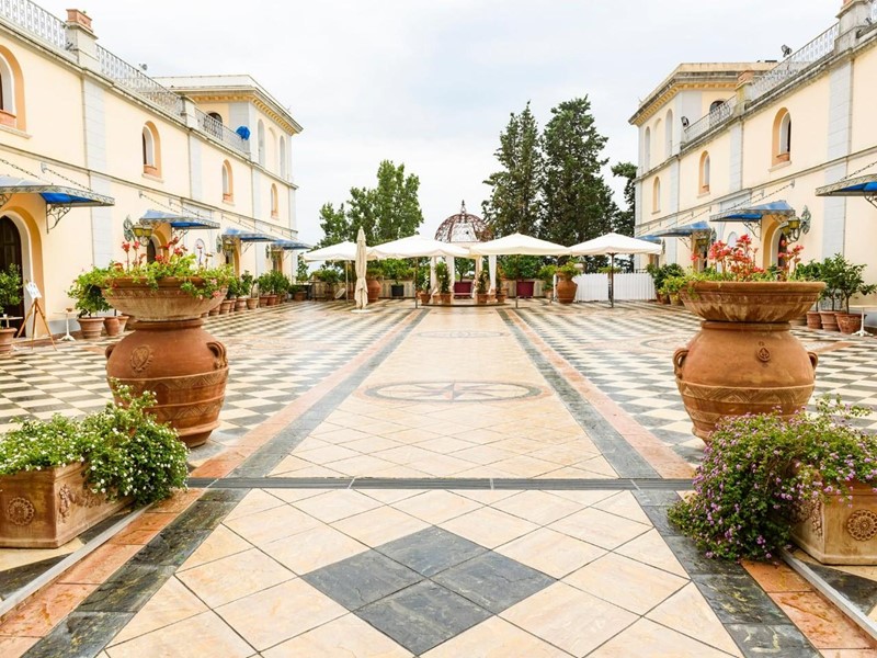 Una scenografica terrazza al piano terra di oltre 900 mq e due appendici ai lati anch'essi elevati di tre piani fuori terra si compongono di sala ristornante al piano terra e le camere ai piano superiori.