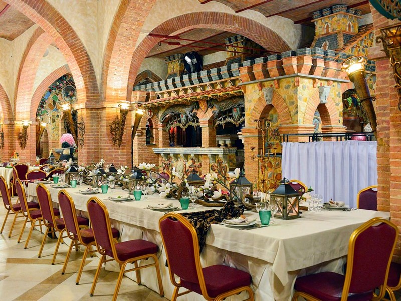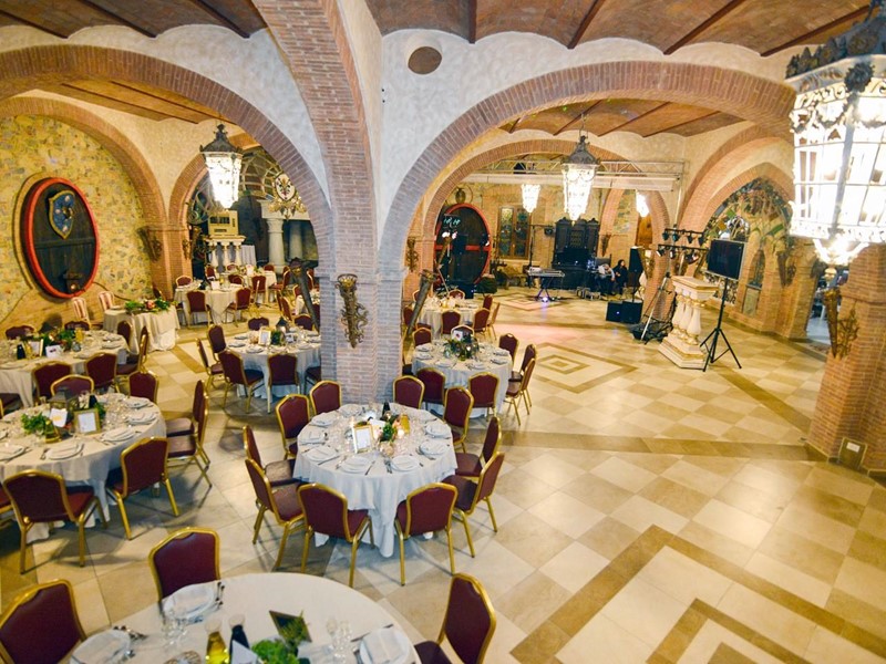 I primo piano seminterrato comprende un'imponente salone per eventi con ulteriore cucina e cantine.