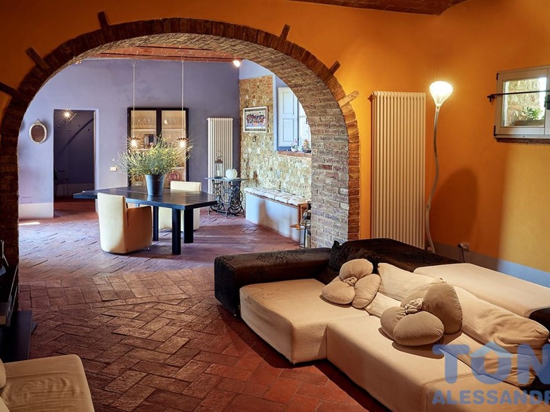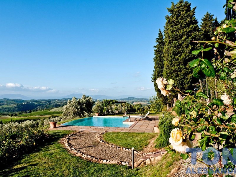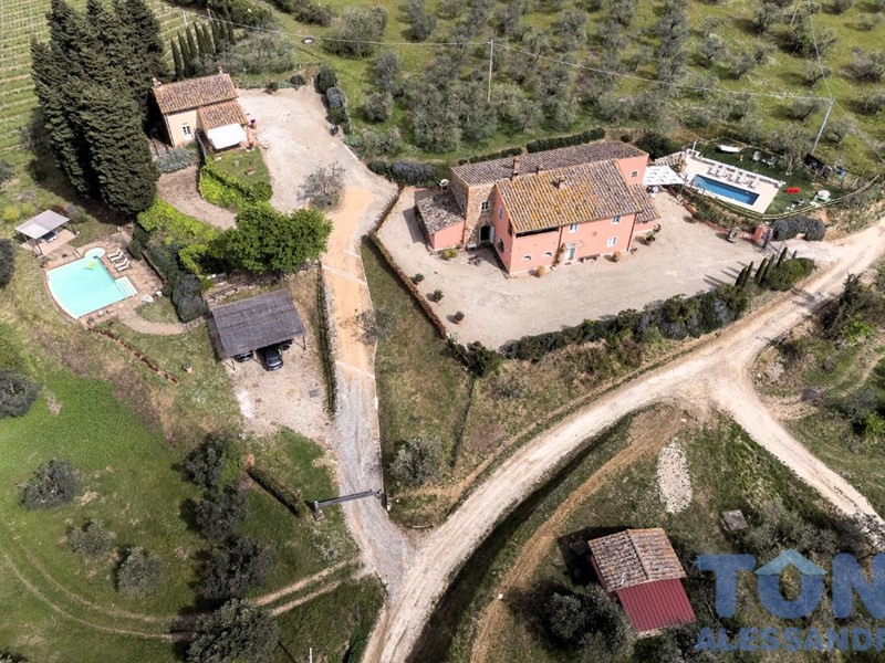 VILLA COLONICA IN VENDITA A MONTELUPO FIORENTINO nelle vicinanze di Firenze. La stupenda dimora è composta da due ville distinte e indipendenti completamente restaurate. La magnifica proprietà è posta sulla cima della collina nel Chianti Fiorentino, garantendo una vista straordinaria sulla poetica campagna toscana e offrendo una sensazione ineguagliabile di serenità. La villa principale è suddivisa su due livelli per complessivi 350 metri quadri, ed è formata da due abitazioni con ingressi separati, di 6 vani con 2 bagni al piano primo e di 6 vani con 3 bagni al piano rialzato. La villa minore, il fienile, sono quasi 100 metri quadri divisi in 4 vani con 2 bagni. Le origini della costruzione risalgono intorno all'anno 1.000 d.c.. Il restauro minuziosamente eseguito di recente ha prodotto un ineguagliabile risultato estetico, in minima parte descrivibile, solo se visitato riusciamo ad assaporare tutte le benefiche sensazioni. Magnifici i pavimenti di cotto fiorentino, belli i soffitti in travi di legno a vista, nuovi e moderni tutti gli impianti. L'elegante residenza in vendita vicino a Empoli offre il perfetto equilibrio di indipendenza con il suo parco di circa 2.500 metri quadri (giardino, oliveta e area parcheggio) e di efficienza in ogni suo particolare. Di straordinaria bellezza la piscina a sfioro con l'idromassaggio e la visuale di cui ne godiamo. C.e.: G. Richiesti 2.500.000 €