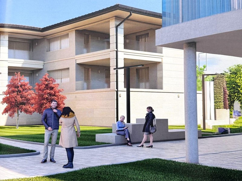 Appartamento posto al piano 1 accessibile tramite scale interne condominiali ma è presente anche l’ascensore. Ingresso in soggiorno-pranzo, angolo cottura per un totale di mq 63,00 circa, un grande terrazzo (loggia) di 25 mq ottimo per cene in estate. disimpegno, ripostiglio/lavanderia, 3 camere, doppi servizi e una seconda loggia. Al piano terra, al coperto sono presenti n°2 posti auto coperti e una cantinetta di circa mq 11,00.