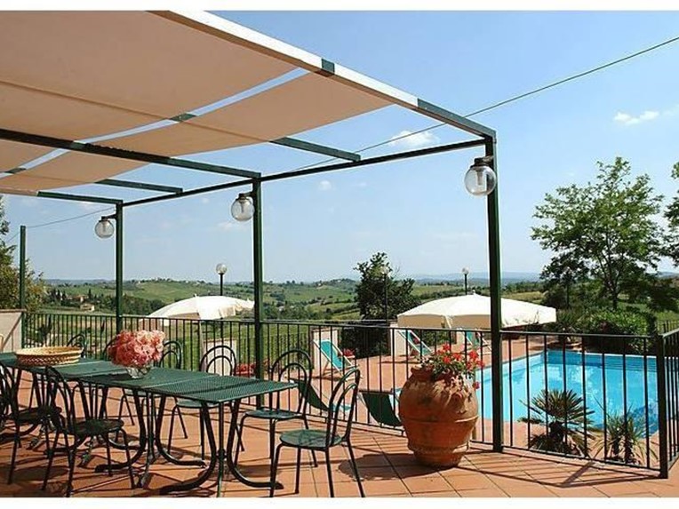 il casale ha una bellissima terrazza con meravigliosa vista panoramica, giardino e bella piscina.