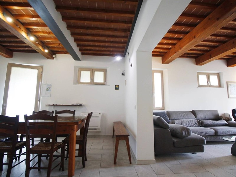 La casa è composta al piano terra da ampio soggiorno, cucina abitabile con caratteristico caminetto, bagno oltre bel porticato dove passare momenti di relax ammirando lo splendido paesaggio della campagna toscana, al piano primo da 2 camere matrimoniali, bagno, ampio ripostiglio.
