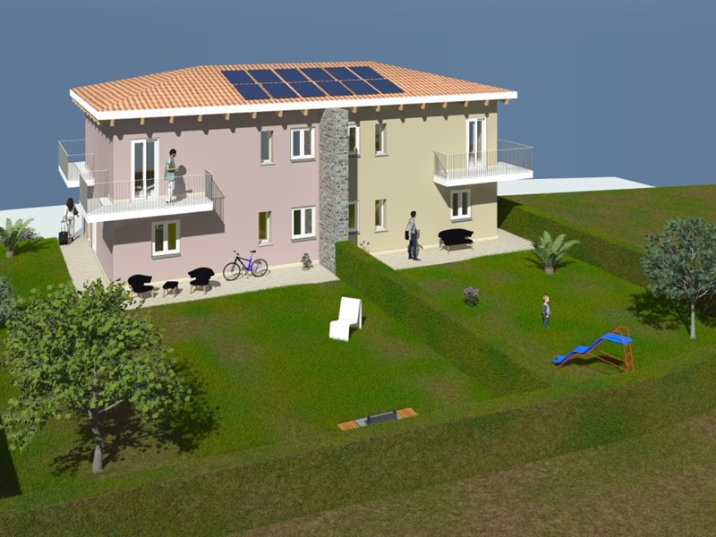 Proponiamo in vendita villino bifamiliare con giardino privato, garage e rustico in bio edilizia di nuova costruzione.