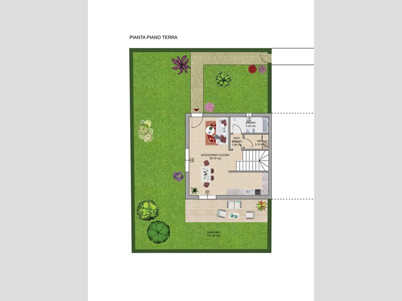 RIEPILOGO METRATURE: 64 mq piano terra, 64 mq piano primo e giardino.