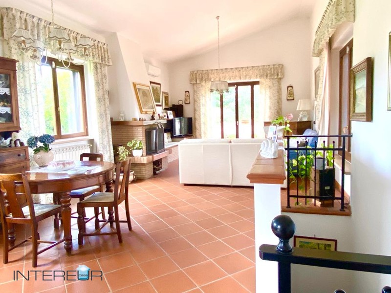 L'immobile è così suddiviso: al piano terra rialzato grande salone di circa 60 mq con camino, cucina abitabile, 4 camere da letto e doppi servizi entrambi con finestra, grande patio di circa 100 mq con accesso dal salone e dalla cucina. Sala hobby attrezzata di circa 120 mq e garage di 38 mq. La villa è rifinita ed in perfette condizioni, libera su tre lati e con vista sui Castelli Romani. Persiane blindate, caldaia a condensazione ed infissi in doppio vetro e legno.