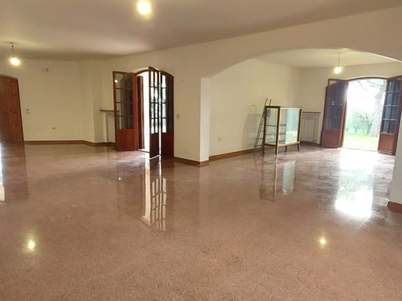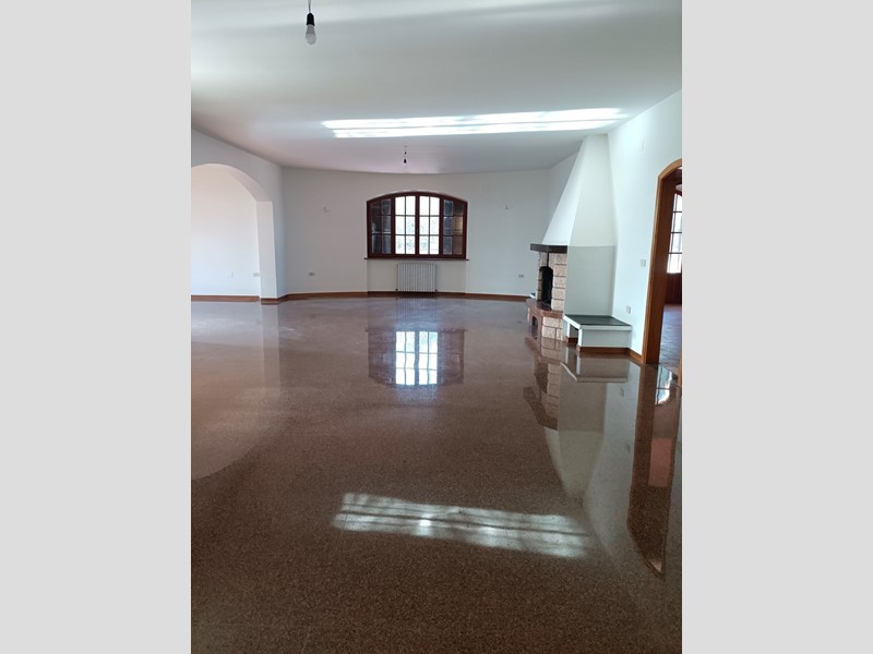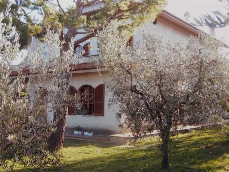 MONTEPRANDONE - A confine con San Benedetto del Tronto, in privilegiata posizione panoramica con incantevole vista, villa indipendente di mq 770 circa totali, costruita negli anni '80 e ben mantenuta. L'immobile è su 4 livelli e gode di ottime rifiniture. Ha impianti dell'epoca costruttiva. Il piano terra di circa 125 mq è composto da ingresso su ampio salone doppio con camino, cucina abitabile, disimpegno, camera matrimoniale, un bagno e un ampio porticato. Il primo piano è composto da disimpegno, uno studio, quattro camere matrimoniali di cui una con bagno privato, un bagno principale oltre terrazzi da cui godere una vista mare spettacolare; segue il secondo piano masardato di circa 100 mq costituito da soggiorno con angolo cottura, un bagno e una camera da letto. Completa la proprietà un piano interrato di circa 300 mq costituito in gran parte da rustico con camino, oltre cantina, lavanderia bagno ed altri vani al momento inutilizzati. La villa è collegata nei vari piani da una comoda scalinata interna. Completano la proprietà due garage per un totale di mq 50 serviti da un comodo scivolo, un giardino recintato di mq 2000 con accesso pedonale e carrabile ed un terreno confinante di circa 4000 mq con 200 piante di ulivi. DiLeoImmobiliare rif 3124