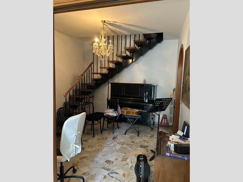 VIA PROSPERO PETRONI in centralissimo stabile storico fornito di ascensore, appartamento su due livelli collegati da comoda scala interna, così composto: primo piano sull'ammezzato ingresso, soggiorno, cucinino, camera, cameretta, bagno; secondo piano con accesso anche diretto dal vano scala, camera, servizio, balcone interno verandato, ripostiglio, termoautonomo, doppia esposizione, due balconi. Normali condizioni generali.