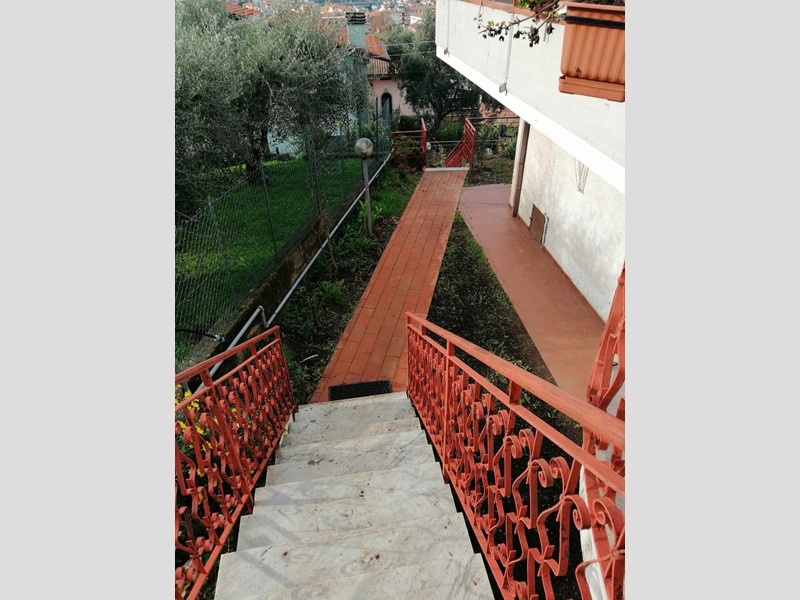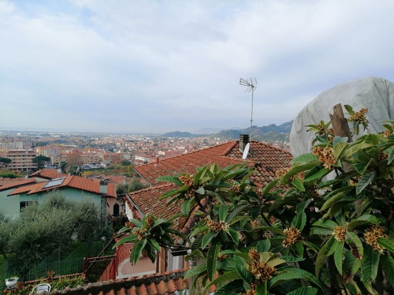 Rif. M 122 Massa , loc. Capaccola. Porzione di bifamiliare al piano primo di circa 120 mq, sviluppata su di un unico livello si compone di ingresso, soggiorno, cucina abitabile, disimpegno, bagno di servizio, camera matrimoniale, altra camera ed un bagno completo, oltre a due comode terrazze vivibili. Ampio terreno a piane di circa 500 metri e un comodo box auto. Posizione strategica, a pochi passi dal centro città, con vista mozzafiato
