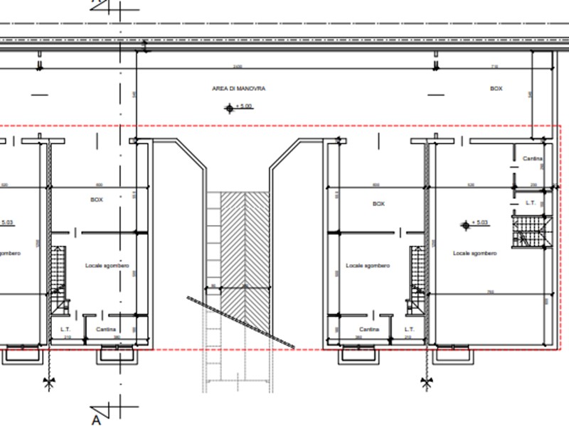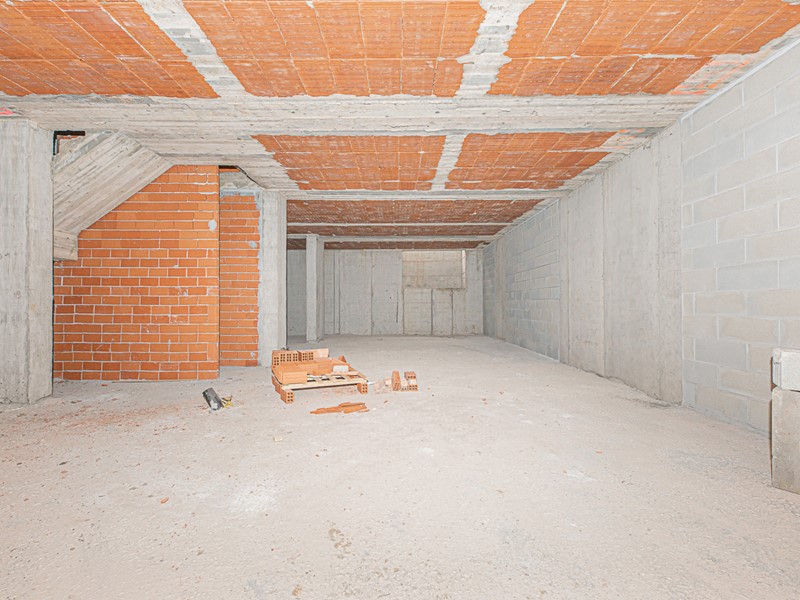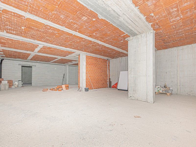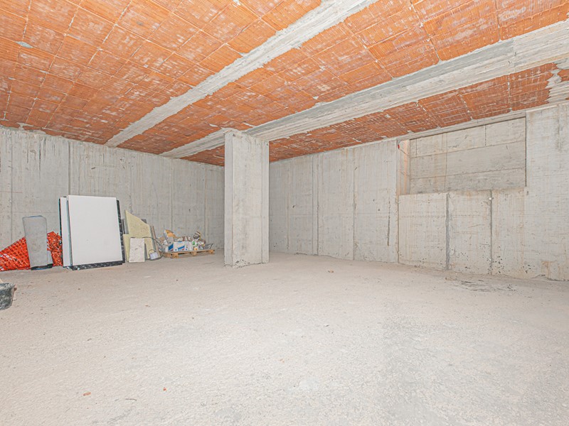 Al piano interrato, troviamo un grande locale di sgombero, ideale come tavernetta, oltre a un box auto di 40 mq per piu auto.