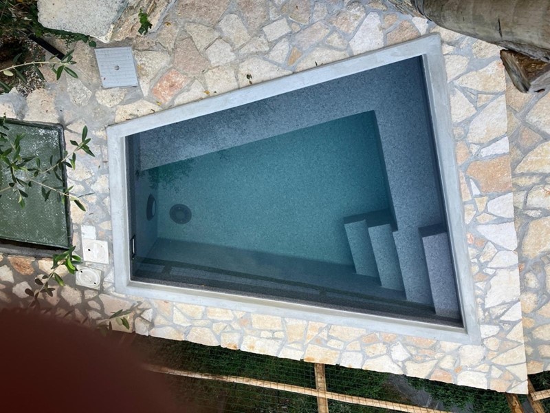 La casa con accesso dal piano terra è composta da ingresso su soggiorno con angolo cottura, camera, soppalco con seconda camera, bagno, terrazzo esterno vivibile, piscina privata e posti auto.