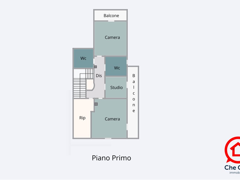 Al piano primo, raggiungibile grazie alla bellissima scala arredo che porta sul secondo disimpegno, troviamo la camera matrimoniale con accesso al primo balcone, la camera doppia con secondo balcone, lo studio e altri due bagni.