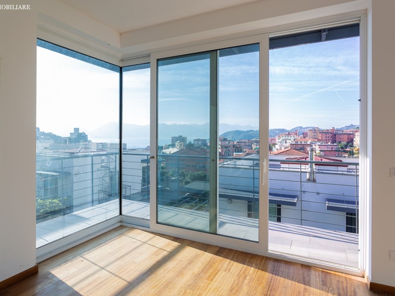 A pochi passi dalle spiagge di Lerici, in posizione dominante con ottima vista mare, semindipendente terratetto composta da: taverna, loc. lavanderia, garage, P.T. ampio soggiorno con terrazza e giardino fronte mare, cucina abitabile, P.1° ampia camera con terrazza, camera, bagno, disimpegno e accesso a lastrico solare di mq. 50. Giardino di mq. 170. Posti auto. Ottime rifiniture.