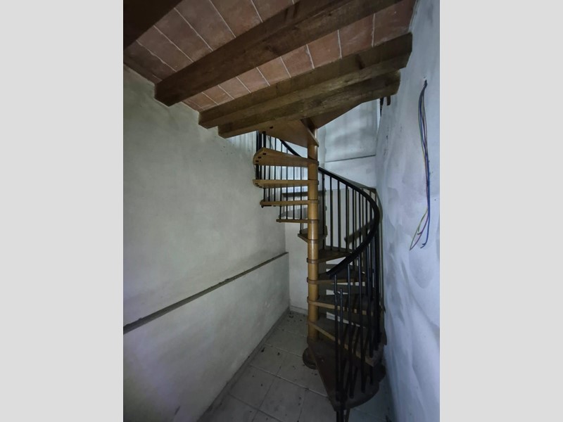 Al primo piano si trova piccolo bilocale posto su 2 livelli di mq.60 con: cucina-soggiorno al piano primo con accesso a un terrazzino e da scala in legno si accede alla camera e al bagno non dotato dei sanitari.