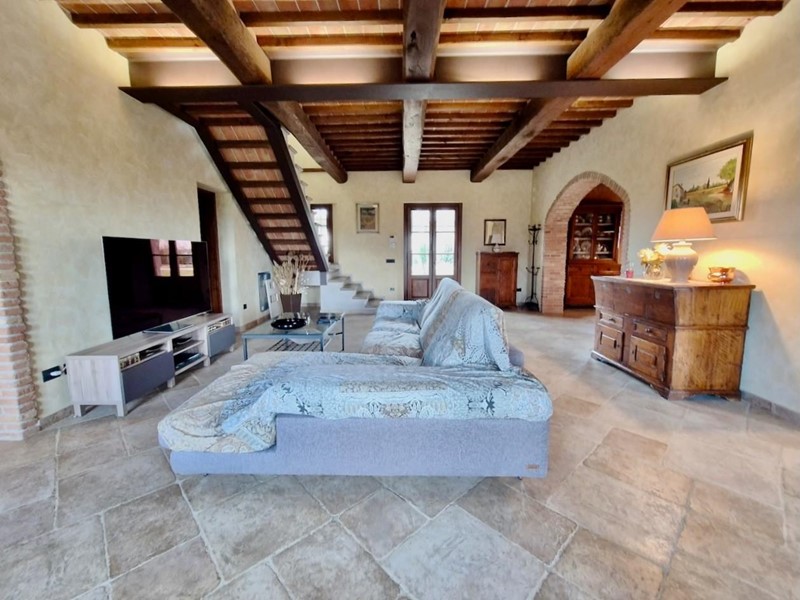 Circondato dal verde, in campagna ma a soli 3 minuti di auto da Cascina e dai principali servizi, proponiamo in vendita questo bellissimo rustico/casale completamente e finemente ristrutturato di complessivi 400 mq circa, disposto su due livelli, circondato sui 4 lati da circa 10.000 mq di giardino. L'immobile si presenta in condizioni perfette, impeccabili, la classe energetica è "A 4", tecnologicamente all'avanguardia, dotato di impianto fotovoltaico da circa 11 Kw con sistema di accumulo da circa 30Kw, impianto di riscaldamento e raffrescamento a pavimento, impianto domotico, impianto di aspirapolvere centralizzato, sistema di produzione acqua calda/fredda per il riscaldamento/raffrescamento azionato da pompa di calore, sistema di stoccaggio acqua calda sanitaria con serbatoio dedicato, impianto di allarme di ultima generazione, impianto di irrigazione tramite acqua di pozzo privato, impianto anti-zanzare. L'immobile internamente è così suddiviso: al piano terra da ampia zona living in open-space con soggiorno, bellissima e grande cucina, sala da pranzo e zona relax con camino, bagno; al piano primo con accesso tramite scala interna da disimpegno notte, 3 grandissime camere da letto con varie comodità al loro interno (una camera matrimoniale con soppalco e bagno privato con accesso a due locali sottotetto ad uso ripostiglio, una camera matrimoniale con bagno privato e una suite padronale composta da camera con soppalco, cabina armadi e bagno). Sempre al piano terra invece troviamo, con ingresso sia dall'interno che dall'esterno, un piccolo appartamento tipo bilocale multiuso con bagno che può essere utilizzato per gli ospiti e/o personale di servizio, per un figlio o per un genitore. Completa la proprietà un locale tecnico posto al piano terra con accesso dall'esterno. Nel giardino è presente un laghetto con fontana a cascata e lo scavo per la piscina (da finire di completare).