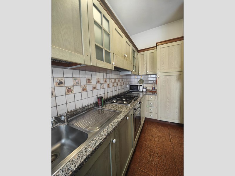 La cucina, separata dalla zona giorno, è spaziosa e ben organizzata. Adiacente ad essa, la sala da pranzo gode di accesso diretto alla terrazza.