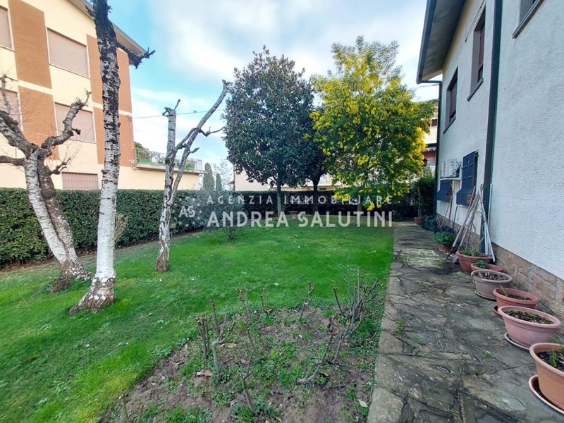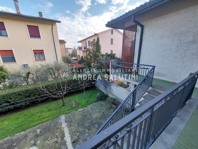 Vendesi villa unifamiliare libera su tre lati sita in zona residenziale a due passi dal centro di santa croce .L'immobile è su due livelli e si compone di: loggiato, DOPPIO ingresso, AMPIO disimpegno cui si accede alla scala che porta al primo piano dove vi è la residenza principale composta da: cucina con TINELLO, salone DOPPIO, tre camere da letto di cui due AMPIE matrimoniali e una singola , bagno PADRONALE. Completa questo appartamento un balcone SEMIPERIMETRALE, uno studio di 7mq circa FINESTRATO e due AMPIE cabine armadio. Le finiture dell'appartamento sono di pregio e tipiche anni 90. Al piano terra troviamo: soggiorno, AMPIA cucina, camera da letto matrimoniale e cameretta oltre bagno finestrato. Nel giardino di 500mq è posizionato locale tecnico che serve tutta l'unità cui è annessa locale lavanderia. Il giardino è in buonissimo stato con piante di alto fusto, siepe e uno splendido roseto. L'immobile per sua natura è facilmente divisibile.