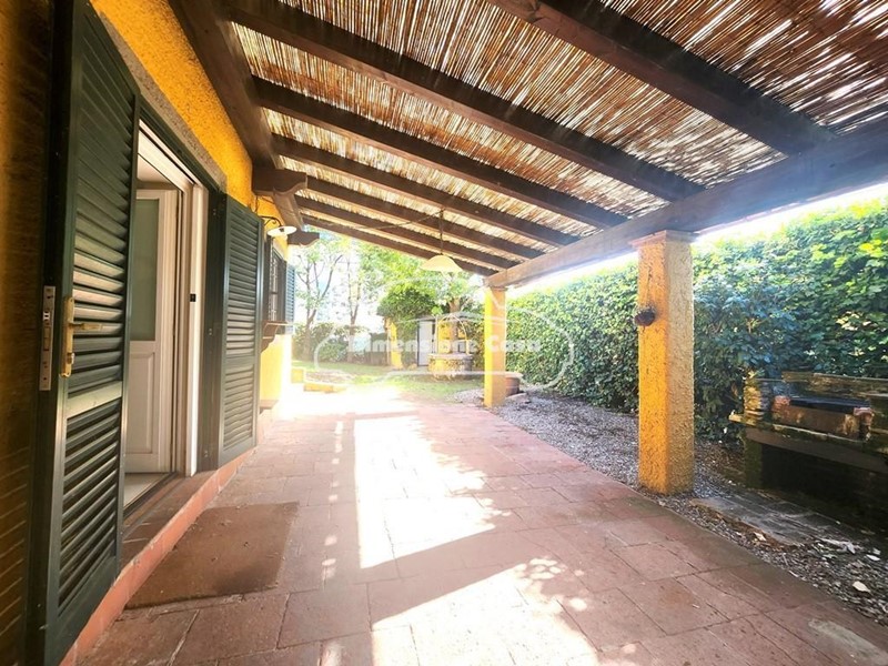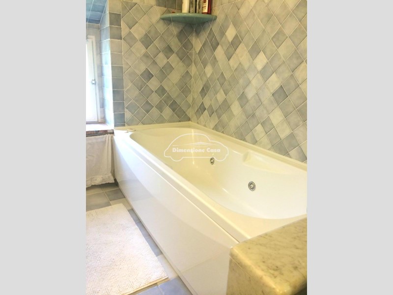 L'abitazione (185mq totali) si compone al piano terra di un'ampia zona living composta da soggiorno con camino, sala da pranzo con cucinotto, da cui si accede alla veranda esterna e al giardino, un vano pluriuso finestrato, un bagno con doccia e un piccolo ripostiglio. Al piano superiore troviamo due ampie camere matrimoniali, una camera con balconcino panoramico ed accesso ad un ripostiglio sottotetto, una stanza armadi finestrata e un bagno con vasca.