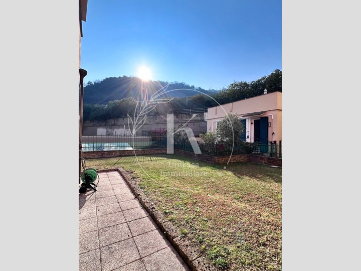 L'abitazione è circondata su due lati da un ampio e curato giardino privato, ideale per rilassarsi all'aria aperta o per momenti conviviali in famiglia. Gli spazi interni sono altrettanto accoglienti e ben distribuiti: il luminoso soggiorno si affaccia direttamente sul verde, mentre la cucina, moderna e funzionale, offre tutto il necessario per chi ama cucinare.