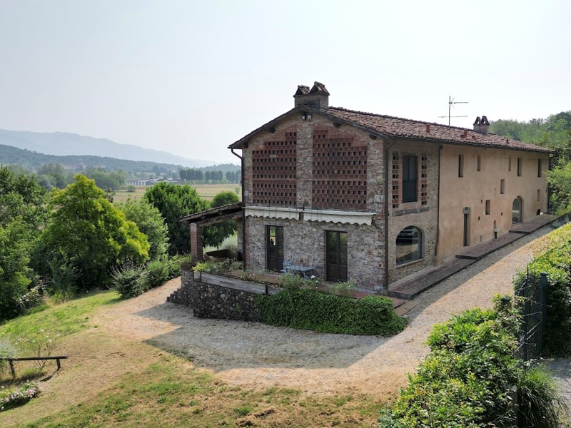 IA04006 - INCANTEVOLE CASA COLONICA PADRONALE IN PIETRA - Questo bellissimo immobile situato sulle prime colline di Lucca, in una posizione panoramica particolare e molto silenziosa, si trova a soli 3 km dal centro storico. La città è facilmente raggiungibile anche in bicicletta. Questo immobile è il risultato di una importante, attenta e totale ristrutturazione di una antica casa contadina. Il recupero ha tenuto conto e rispettato tutte le caratteristiche del fabbricato esaltato nella finitura da materiali antichi. Le bellissime facciate in pietra a faccia vista introducono da varie parti del giardino all'interno che si presenta con ambienti ampi e caratteristici di tono padronale e che sono rifiniti ottimamente con cotto antico, tavolame per parquet, infissi in legno e tutti in vista i caratteristici soffitti in legno e mezzane sia al piano terra che al piano primo. La superficie è generosa sviluppando l'immobile in circa mq.450. Grande attenzione è stata fatta a livello impiantistico. Un bellissimo lavoro è stato fatto a livello strutturale con consolidamento delle fondazioni e rifacimento totale del tetto sul quale sono state sistenate tegole in cotto antico. Al piano terra si trovano un ingresso principale che apre su un ampio e luminoso salone doppio con camino e grandi vetrate che aprono sulla campagna circostante, una spaziosa sala da pranzo con camino, una cucina abitabile con dispensa e accesso a un pergolato esterno ottimo per le serate estive, un bagno di servizio e un ulteriore grande soggiorno con accesso a un porticato, che offre una piacevole zona giorno all’aperto con una stupenda vista sulla campagna circostante. Al primo piano l'immobile ha una zona con due camere matrimoniali, ciascuna con studio e bagno con doccia, una terza camera matrimoniale, un bagno con vasca. Interessantissimo a questo piano una zona destinata ad un appartamentino indipendente composto da cucina, bagno, camera da letto, lavanderia/ripostiglio e soggiorno con camino. L'impianto termico è autonomo per le due zone ed è a metano. Allacciato all'acquedotto comunale. Esternamente è dotato di terreno a giardino e coltivabile per circa 19.000 mq. in gran parte recintato sul quale è possibile realizzare una piscina. Richiesti €.1.980.000,00