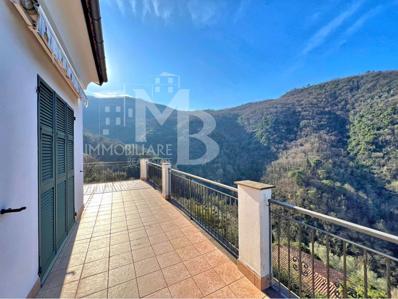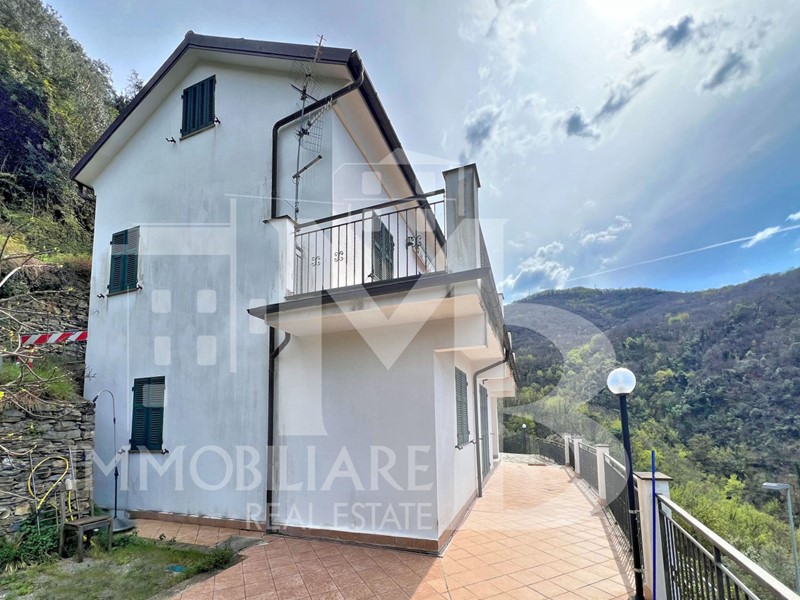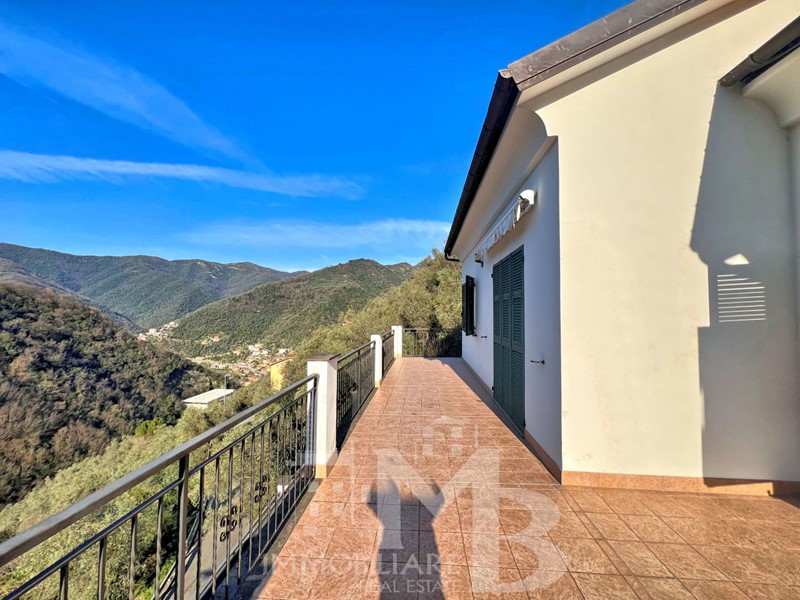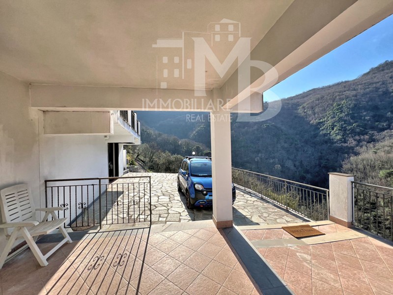 AVEGNO- Villa mono/bifamigliare -In posizione dominante e soleggiata per tutto l'arco del giorno, siamo liete di proporre questa villa di ampia metratura e recente costruzione. Disposta su due livelli principali oltre al sottotetto, può facilmente essere separata e suddivisa in due unità abitative, in quanto gli impianti sono già predisposti Si accede alla proprietà attraverso il cancello carraio elettrico e si raggiunge la corte pavimentata che circonda l'immobile dove possono sostare anche due macchine. Sul lato monte è il grande box di oltre mq 40. Dall'ingresso loggiato si accede alla zona giorno costituita da sala e cucina a vista; sullo stesso piano sono anche due camere e un bagno. Salendo la scala interna si raggiunge il piano primo e il grande disimpegno, pensato per essere convertito in altra zona giorno sulla cui parete a levante sono presenti gli allacci per installare una cucina. A questo piano sono presenti anche ulteriori due camere e un bagno. Tutti i vani affacciano sul panoramico terrazzo, che si estende fino alla copertura del box, rivestita dal manto erboso. Tutto intorno alla villa si estende l'uliveto/frutteto. Parte di esso è anche sotto strada e qualora vi fosse interesse si possono acquistare anche altri terreni e un fabbricato diruto, non molto distante. Prezzo € 495.000,00 Nostro Rif. 22611