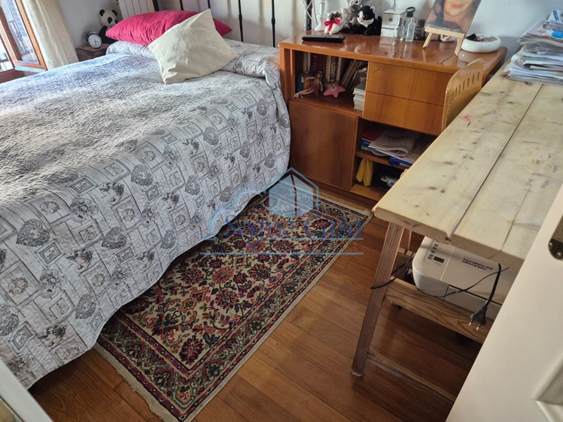 Salendo al piano superiore si accede alla zona notte, composta da due spaziose camere da letto, di cui una mansardata con suggestive travi in castagno a vista e una spettacolare vista mare. Completa il piano un bagno finestrato con doccia.