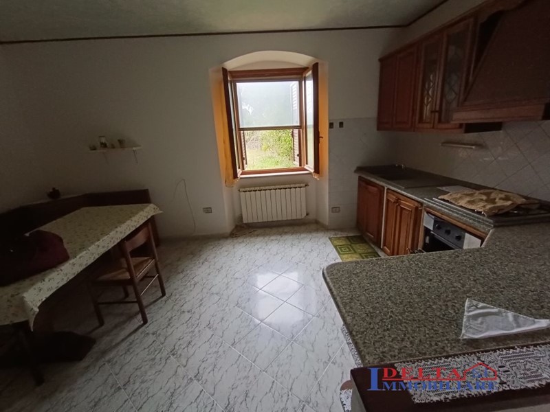 NS ESCLUSIVA Nella campagna toscana , immerso nel verde delle colline livornesi , vendesi porzione di rustico , terratetto , libero  su due lati , ingresso indipendente , composta da loggiato di ingresso con annesso un locale magazzino finestrato e bagno ; accesso all'ampio zona giorno con cucina a vista , scala interna comoda di accesso alla zona notte del piano primo dove esistono due camere matrimoniali , un bagno ed una ampia terrazza. Completano la proprietà un giardino adiacente l'immobile ed una corte condominiale di accesso. Termoautonomo a gas gpl.\nAdiacente all'immobile sono  presenti due  locali uso magazzino e forno condivisi in comproprietà con il vicino.\nContestualmente all'unità immobiliare, è possibile acquistare un terreno ad uso agricolo di circa 7 ettari ( seminativo ) con capannone completamente da ristrutturare .\n- prezzo appartamento con giardino  and euro; 120.000\n- prezzo forno e locale magazzino     and euro; 12.000  \n- prezzo terreno agricolo di 7 ettari  con capannone da ristrutturare completamente  and euro; 130.000\nRIF. G7575 - Maggiori Dettagli: terrazza abitabile, Giardino, Cucina Abitabile