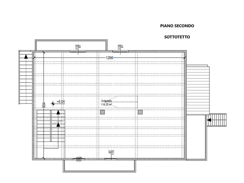 SOTTOTETTO di 116 mq di cui utilizzabili 58 mq; un balcone e possibilità di poterne fare un altro.